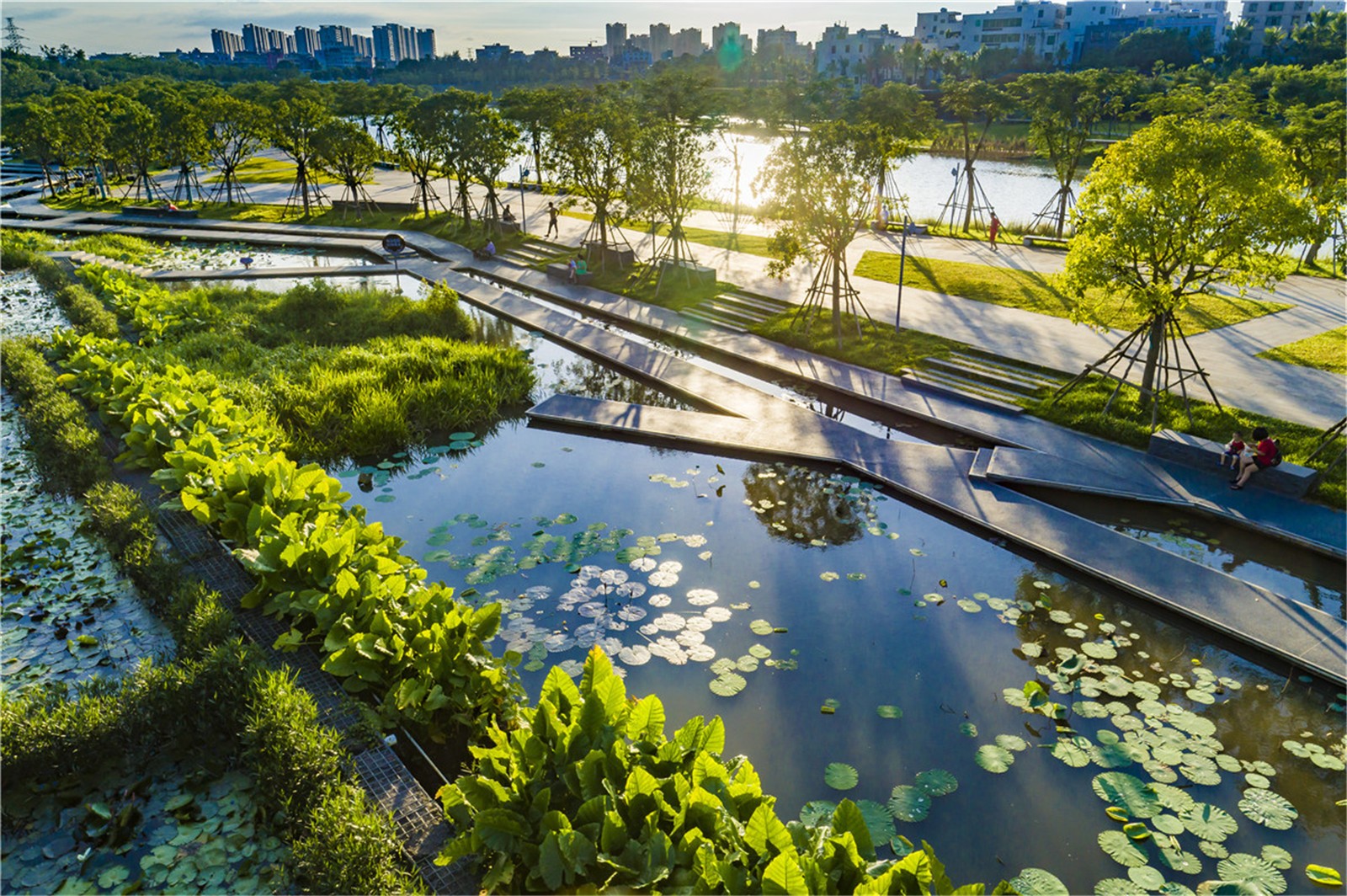 通過這些景觀設(shè)計策略,原先持續(xù)惡化的河道和親水性極差的城市邊緣地帶,已成功改造成一個集雨水凈化、生境營造、滿足市民休閑功能于一體的海綿公園 。