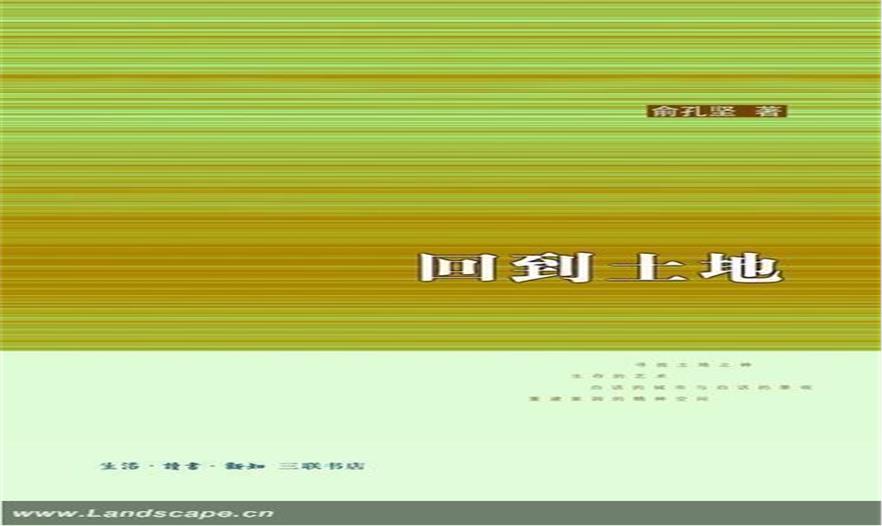在《回到土地》封底圖書簡介中,三聯(lián)書店的編輯這樣寫道:“中國正處于重建鄉(xiāng)村和城市景觀的重要歷史時期,面對著因能源短缺與生態(tài)環(huán)境惡化而帶來的生存危機、全球化和社會文化轉型中的民族身份危機和與之伴隨的草根信仰危機,俞孔堅分別從城市、田園和遺產(chǎn)三個層面論述他的景觀理想:一種“生存的藝術”,即“天、地、人、神的和諧”。為此,他提出了引起熱議的“反規(guī)劃”理論,提倡“白話的城市與白話的景觀”,強調“足下文化與野草之美”,并對所謂的“新農(nóng)村”建設保持警惕,認為有可能破壞農(nóng)村延續(xù)幾千年的土地與人的和諧,“新能源”——農(nóng)村的城市化也許是一個巨大的陷阱?!盎氐酵恋亍笔怯峥讏岳碚摵蛯嵺`的基點,而他的追求則是建設真正“中國”而“現(xiàn)代”的景觀。”