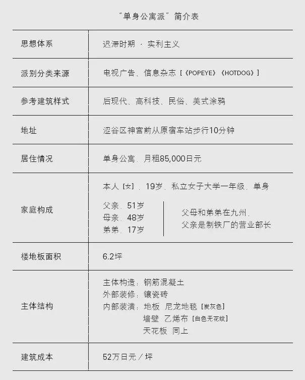 旅館基本上可以說是屬于旅人的地方。旅人沒有固定的居所,總是在流浪,旅館就是專為他們而設(shè)的臨時的[temporary]停留場所。對現(xiàn)代都市中的單身者來說,理想的生活狀態(tài)不是安定下來,而是要處在不斷的變化中。真實的人生也許是從婚姻開始的,也許是從就職開始的,但無論怎樣總是會開始的。到那時,自己就會因各種原因而不得不安定下來了。但是在這之前,在這段所謂的“遲滯時期”[moratorium]里,不是想拼命努力,而是想就這么游蕩著。這就是他們的理想。所以說,他們會選擇旅館一樣的空間的原因之一,就是因為喜歡旅館特有的那種旅行中的感覺的象征作用。除了旅行,旅館同時還是性的象征。在電視劇中,一對男女消失在旅館里的鏡頭就足以證明這樣的象征意義了。如果說游蕩是都市里的單身生活者理想的狀態(tài),那么性則是他們最關(guān)心的事。因此,旅館就有了明顯的雙重象征意義,即游蕩和性的暗示象征意義[connotative] 。“單身公寓”在非常短的時間內(nèi)就被接受,且在建筑界站穩(wěn)了腳跟。之所以會這樣,是因為它利用“旅館”這個空間模型,成功地滿足了都市單身生活者對空間的理想和欲望,而且正是因為有這樣的象征作用,這樣狹小的混凝土密室空間,才總算可以作為人們的住所而存在了。旅行其實意味著空間的拓展,而性則意味著與他人的交流。這兩者兼具的作用,就是使居住者能夠打開“意識的通風(fēng)口”。物理意義上的密室空間也隨著“意識的通風(fēng)口”的打開而得到了解放?!皢紊砉ⅰ钡木幼≌撸诂F(xiàn)實中是不是個旅人,或者有沒有在這個密室空間里做過愛,這并不重要。重要的是,只要能使他們產(chǎn)生這種聯(lián)想,“單身公寓”就不再是一個密閉的空間,因為他們的意識已經(jīng)得到了自由。這就是象征作用的力量所在。