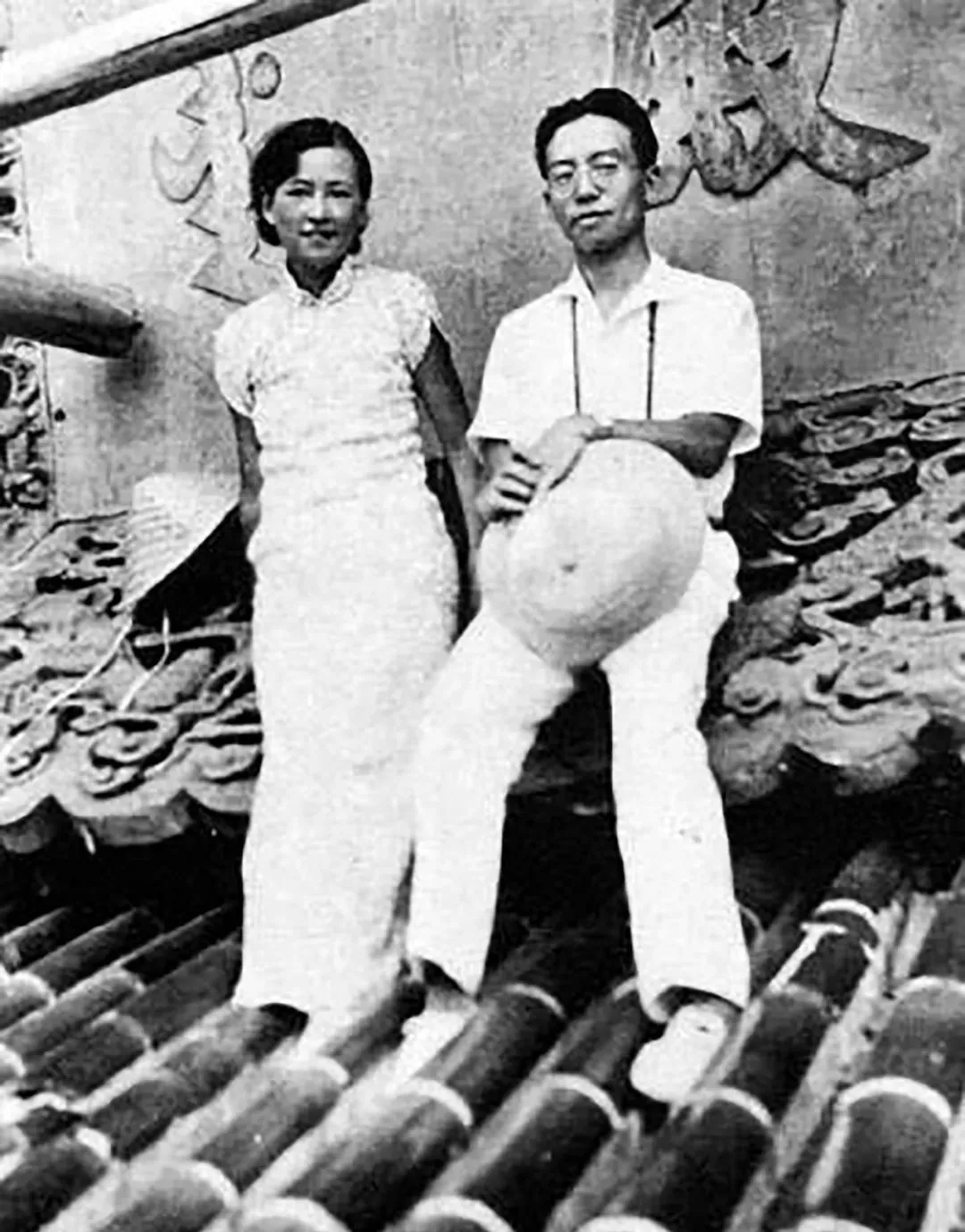 ▲1936年前后,林徽因與梁思成在北平天壇正在修繕的祈年殿屋頂上。清華大學(xué)建筑學(xué)院中國營造學(xué)社紀(jì)念館供圖