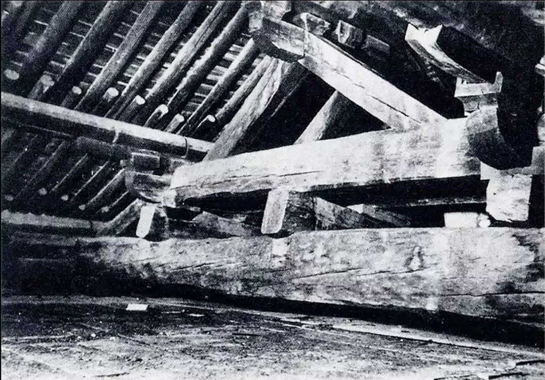 ▲圖片東大殿屋頂人字形叉手&無侏儒柱,梁思成攝