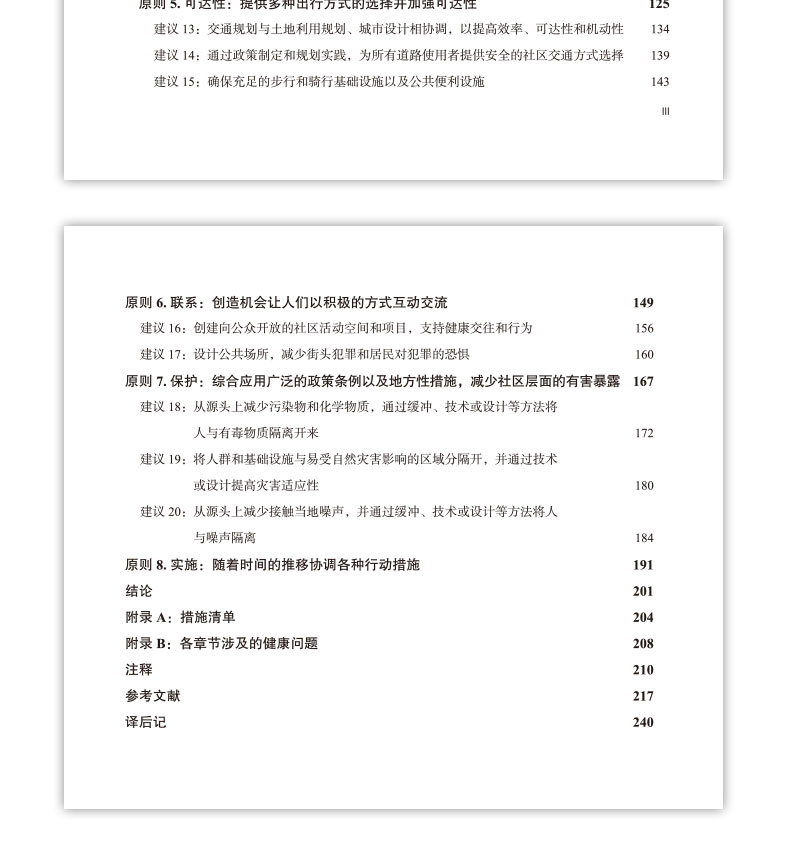 本書屬于工具和解釋說明的理論書籍。主要探討如何通過規(guī)劃和設(shè)計(jì)策略來創(chuàng)建健康的社區(qū),書中通過提出8個(gè)不同的原則作為組織框架,并在不同原則下提出相應(yīng)的20個(gè)具體提議,以進(jìn)一步闡述創(chuàng)建健康社區(qū)涉及不同維度和層的體問題。與許多理論書籍不同的是,本書的組織方式類似于一套完整的創(chuàng)建健康社區(qū)的指導(dǎo)框架說明,按照其8個(gè)原則和不同提議,可以進(jìn)一步實(shí)現(xiàn)創(chuàng)建從身體、心理和社會(huì)各個(gè)方面接近健康的健康社區(qū)的目標(biāo),具有很強(qiáng)的實(shí)用值。