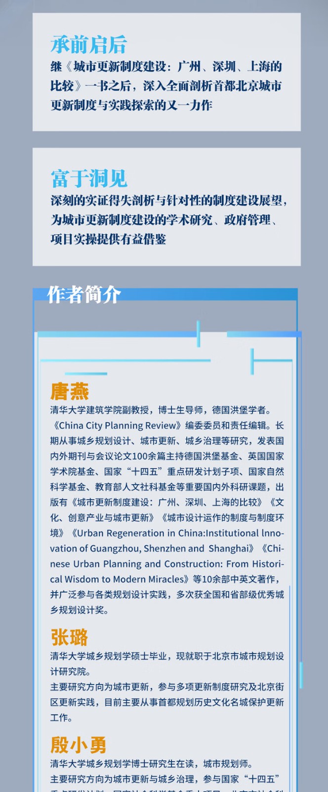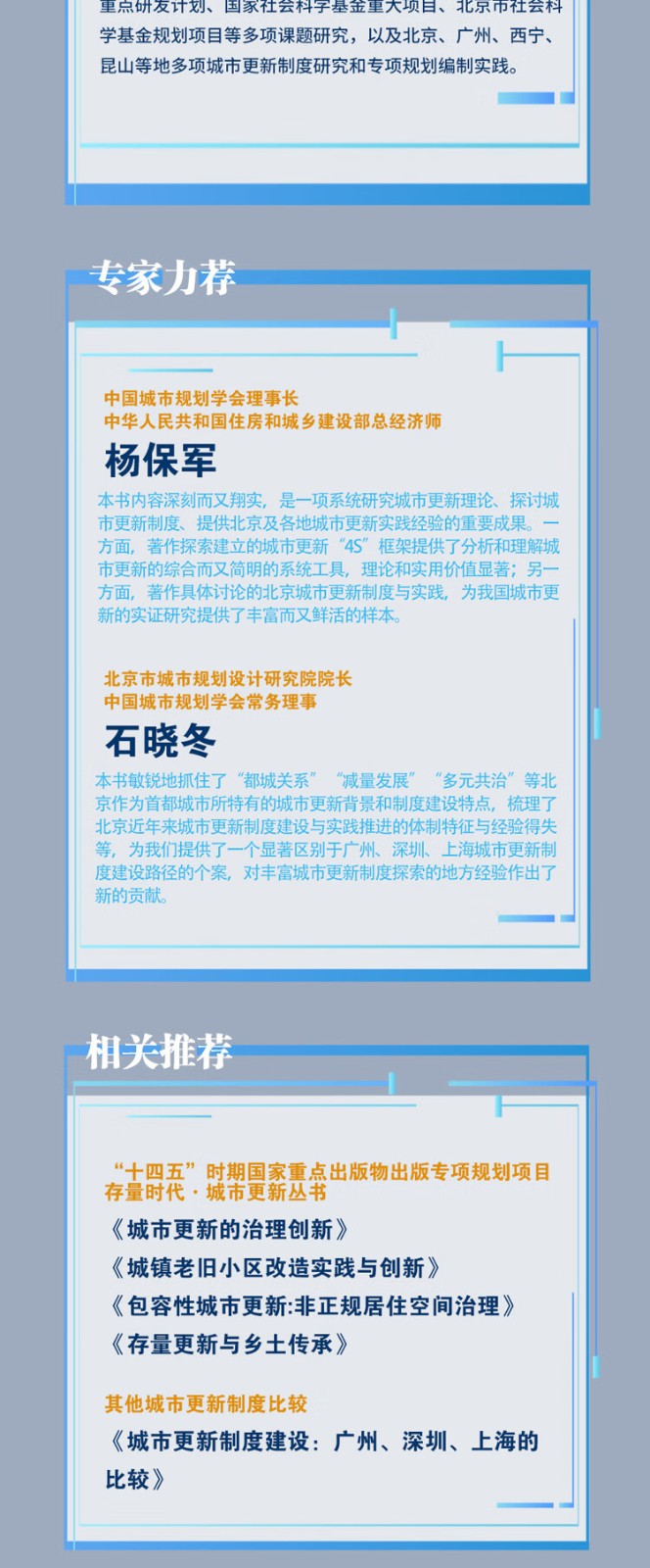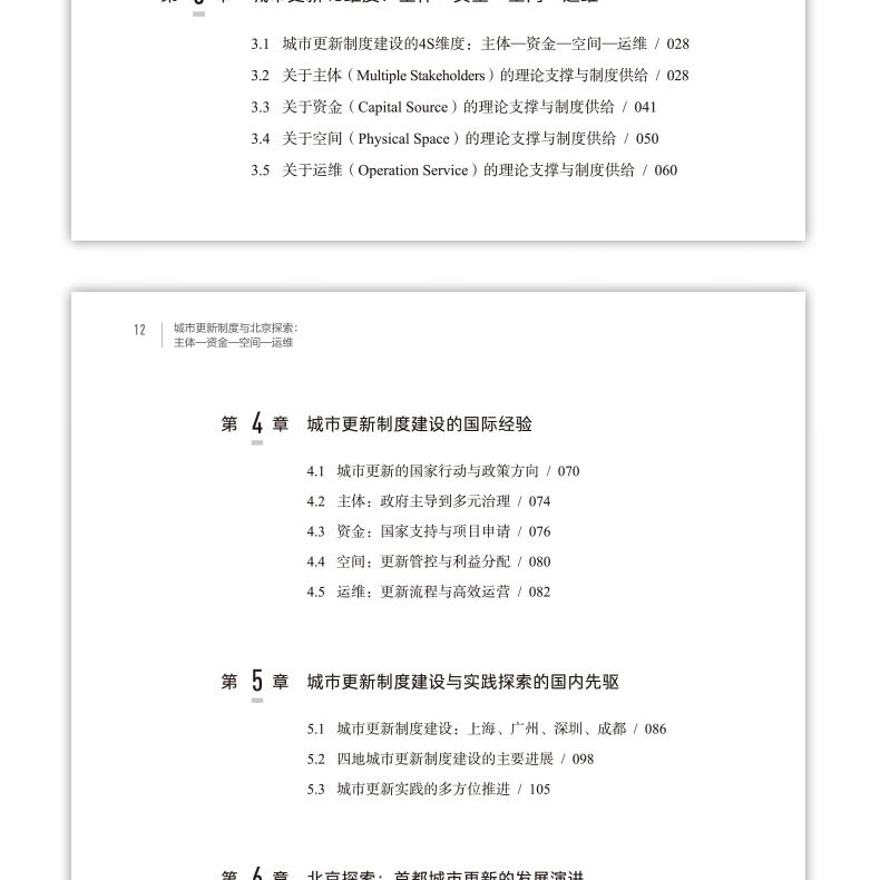 “制度”是干預(yù)和引導(dǎo)各地城市更新行動(dòng)、保障更新工作有序落地的關(guān)鍵所在。面對(duì)城市更新制度研究千頭萬(wàn)緒、紛繁復(fù)雜的討論困境,本書建構(gòu)了簡(jiǎn)潔明了的“主體一資金一空間一運(yùn)維”4S分析框架,以此為線索梳理城市更新制度供給的相關(guān)理論,以及英、美、德、日、新等國(guó)和我國(guó)廣州、深圳、上海、成都等城市的更新制度建設(shè)經(jīng)驗(yàn)。著作聚焦我國(guó)率先實(shí)施“減量規(guī)劃”的超大城市北京,采用4S框架體系化地分析了北京城市更新的演進(jìn)歷程、制度發(fā)展與實(shí)踐創(chuàng)新,綜合揭示北京城市更新的特殊環(huán)境、當(dāng)前進(jìn)展和未來(lái)走向等,為我國(guó)其他城市和地區(qū)提供借鑒。