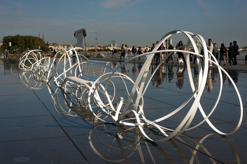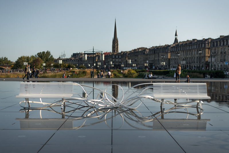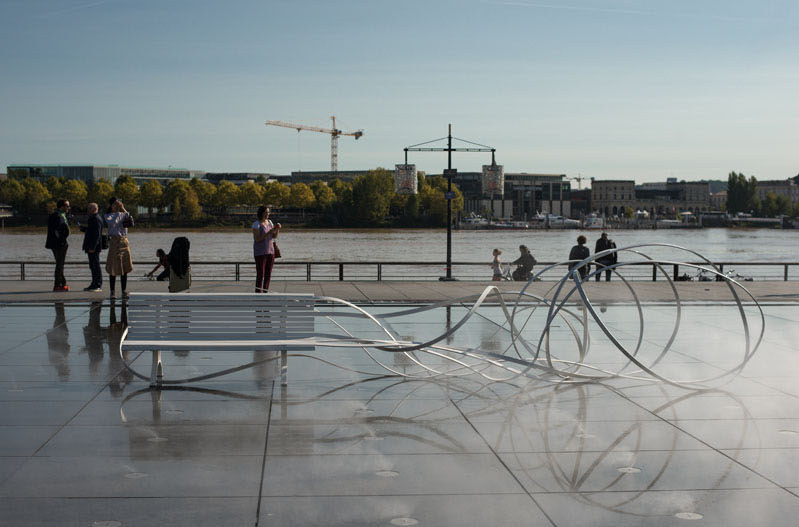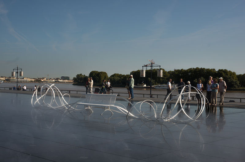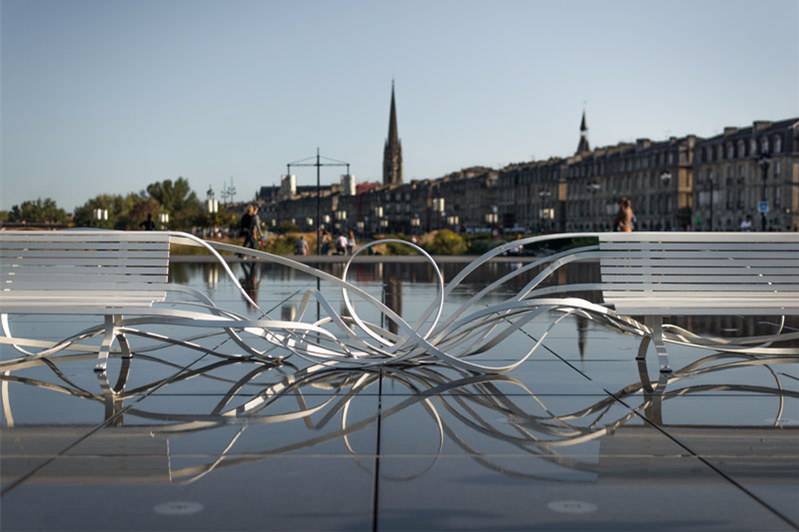 通過在Miroir d'Eau上安裝長凳,水可以讓物理地標(biāo)轉(zhuǎn)向他們的頭部,在地面上創(chuàng)造有趣的反射,供人們欣賞。