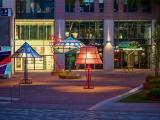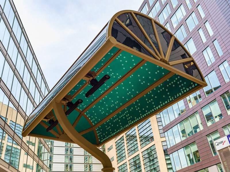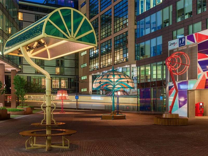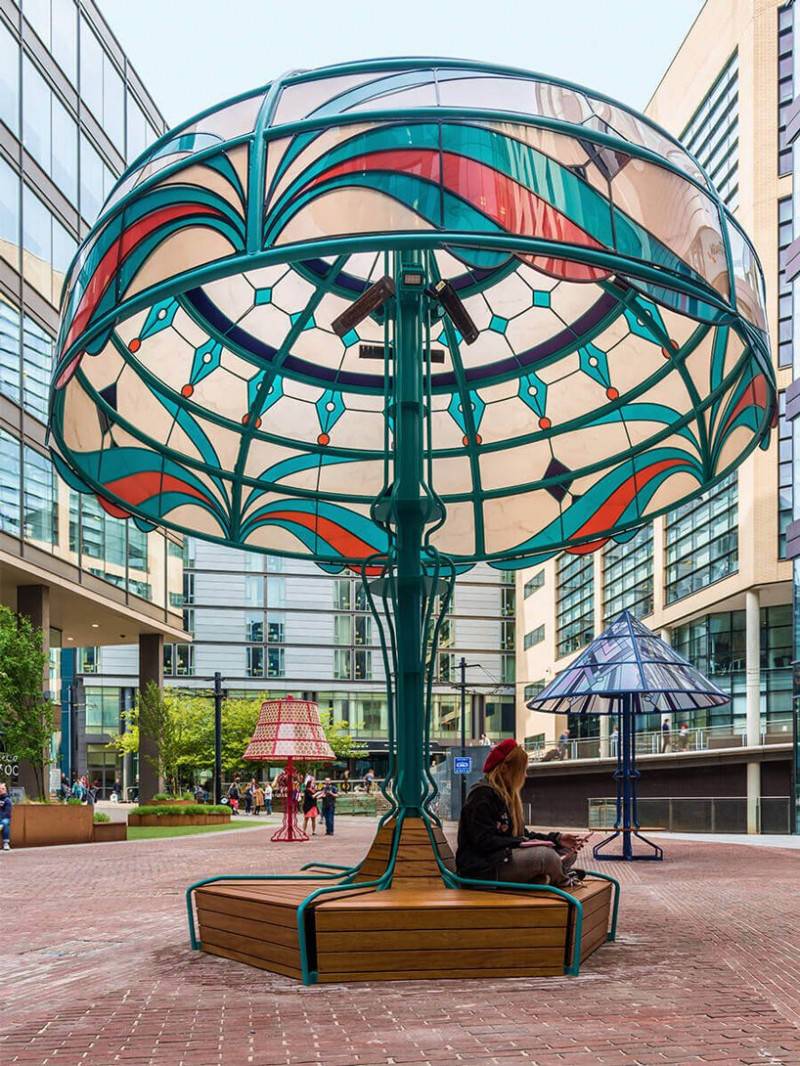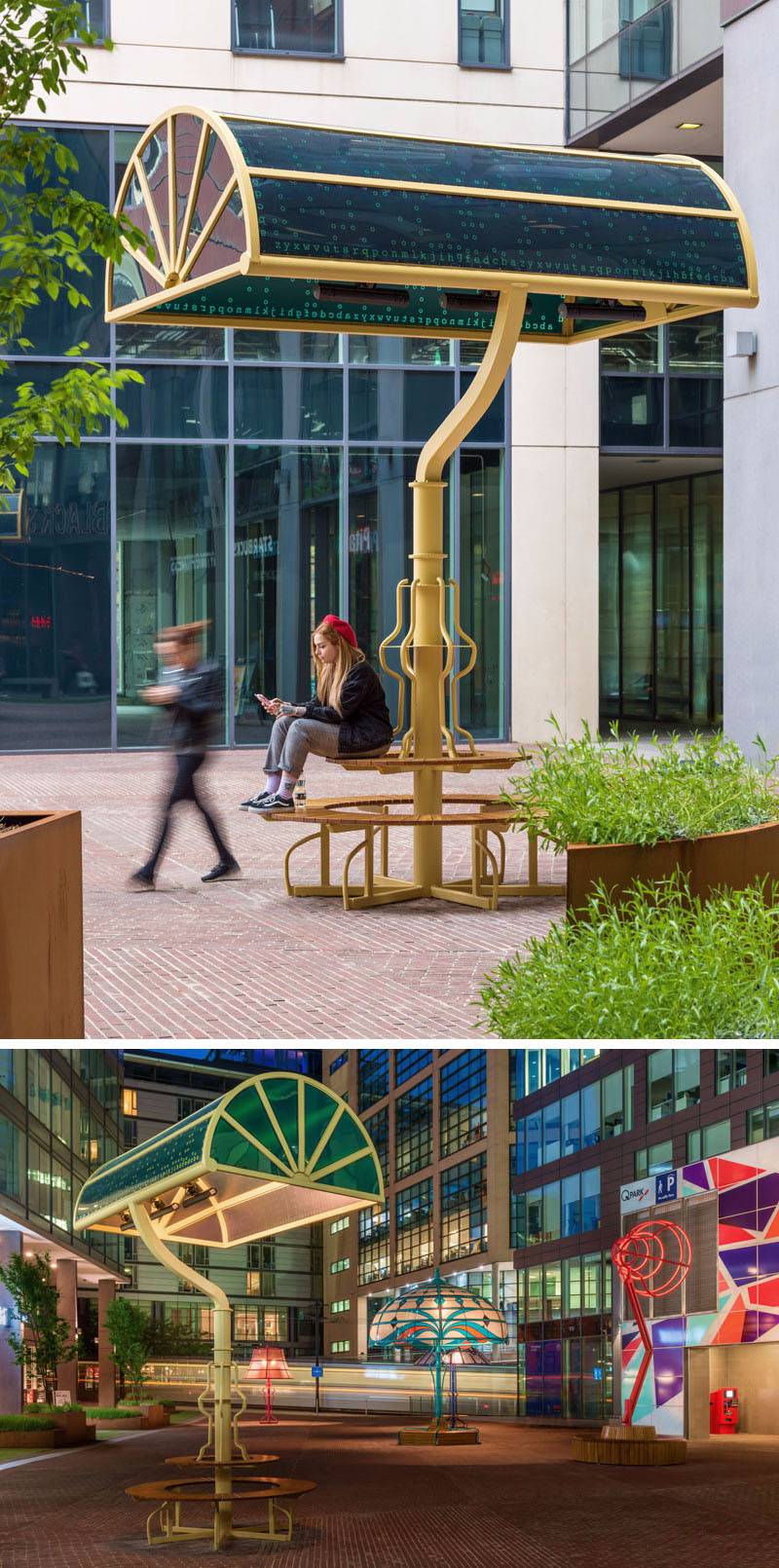 每個(gè)燈具高度從3.4米到6米不等,為人們提供住所和座位,并在冬季安裝電加熱器。