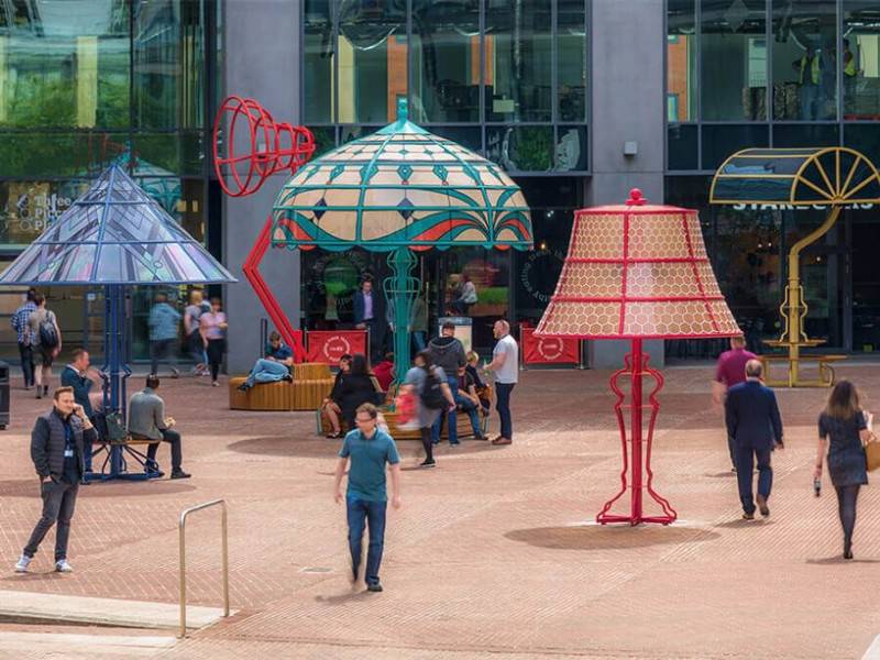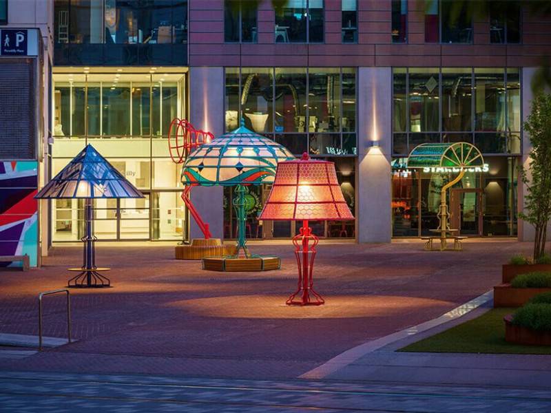 藝術(shù)和設(shè)計(jì)工作室Arcylicize創(chuàng)造了“曼徹斯特?zé)艟摺?,它是五個(gè)超大燈,照亮了英國(guó)曼徹斯特市。