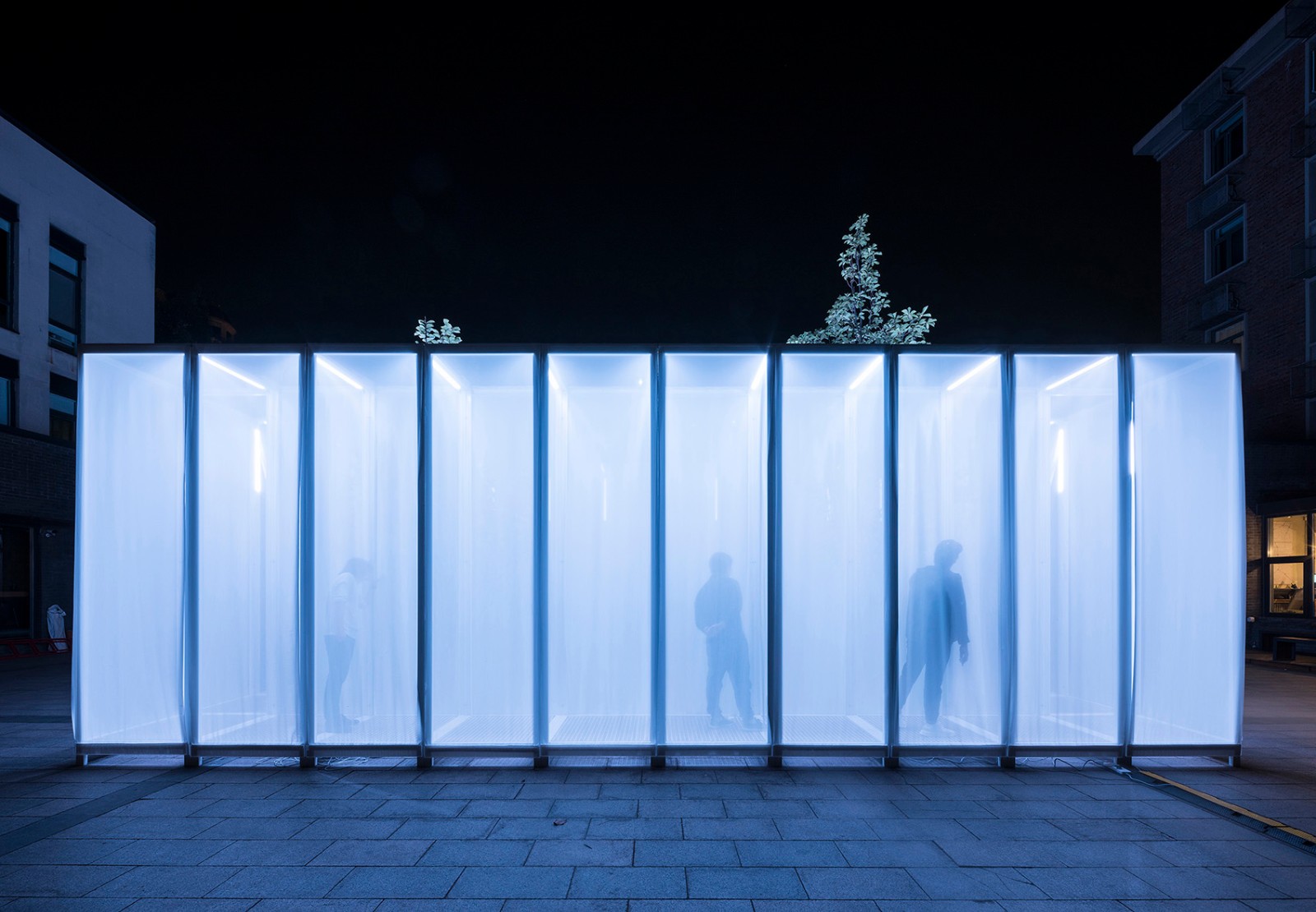 當然這個空間也并不是一個單純的文化和聚會的場所,同時也是一個具有象征意義的標志,提醒我們反思并且去改善影響我們居住的城市的那些緊迫的問題。在空的上方通過工業(yè)加濕器形成的煙霧帶來迷幻和混沌的效果,從空間中向上看去,就如同城市里的霧霾,警示人們過度消費給城市帶來的后果。