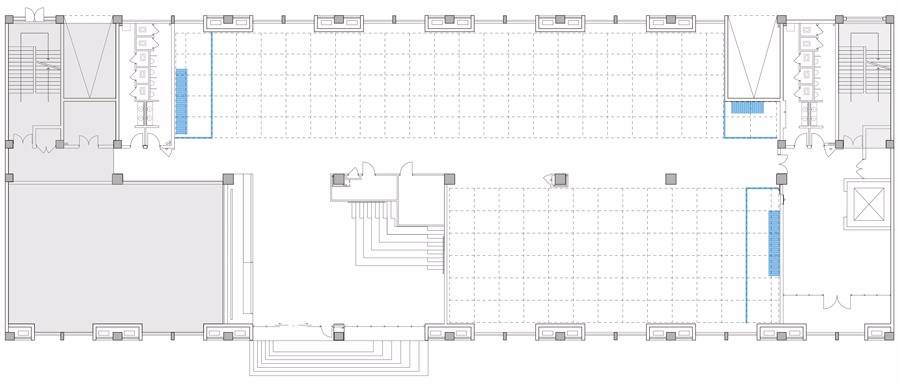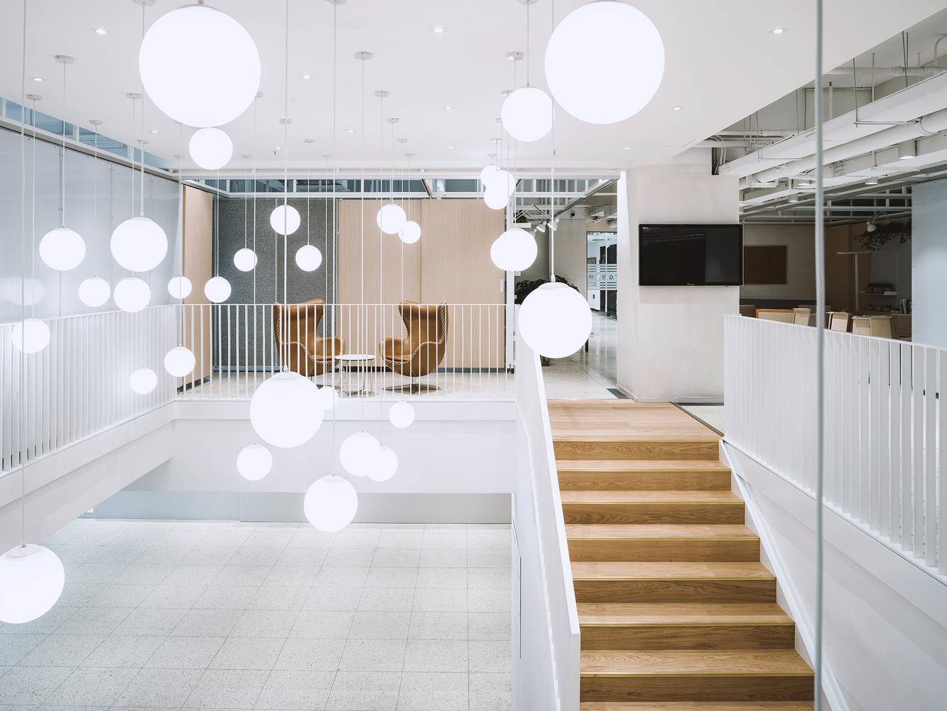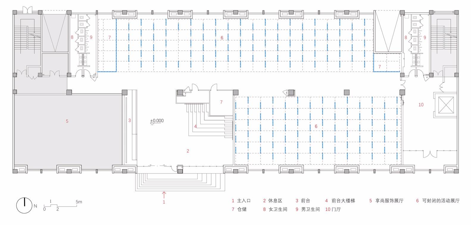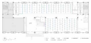 在通風(fēng)上,經(jīng)過(guò)多種方案的比較,最終選擇了二層樓板開(kāi)大洞,二層頂部增加機(jī)械通風(fēng)的方案,使建筑的風(fēng)量和換氣次數(shù)達(dá)到辦公空間的標(biāo)準(zhǔn)。由于業(yè)主在改造的過(guò)程中需要暫時(shí)保留一層的部分廠房功能,暫時(shí)只實(shí)施了一個(gè)大洞。