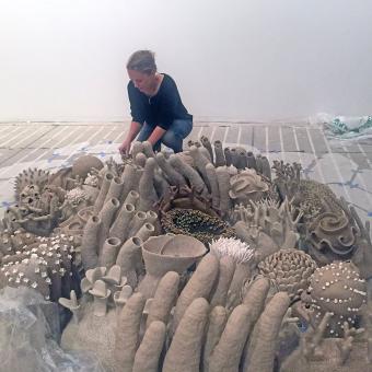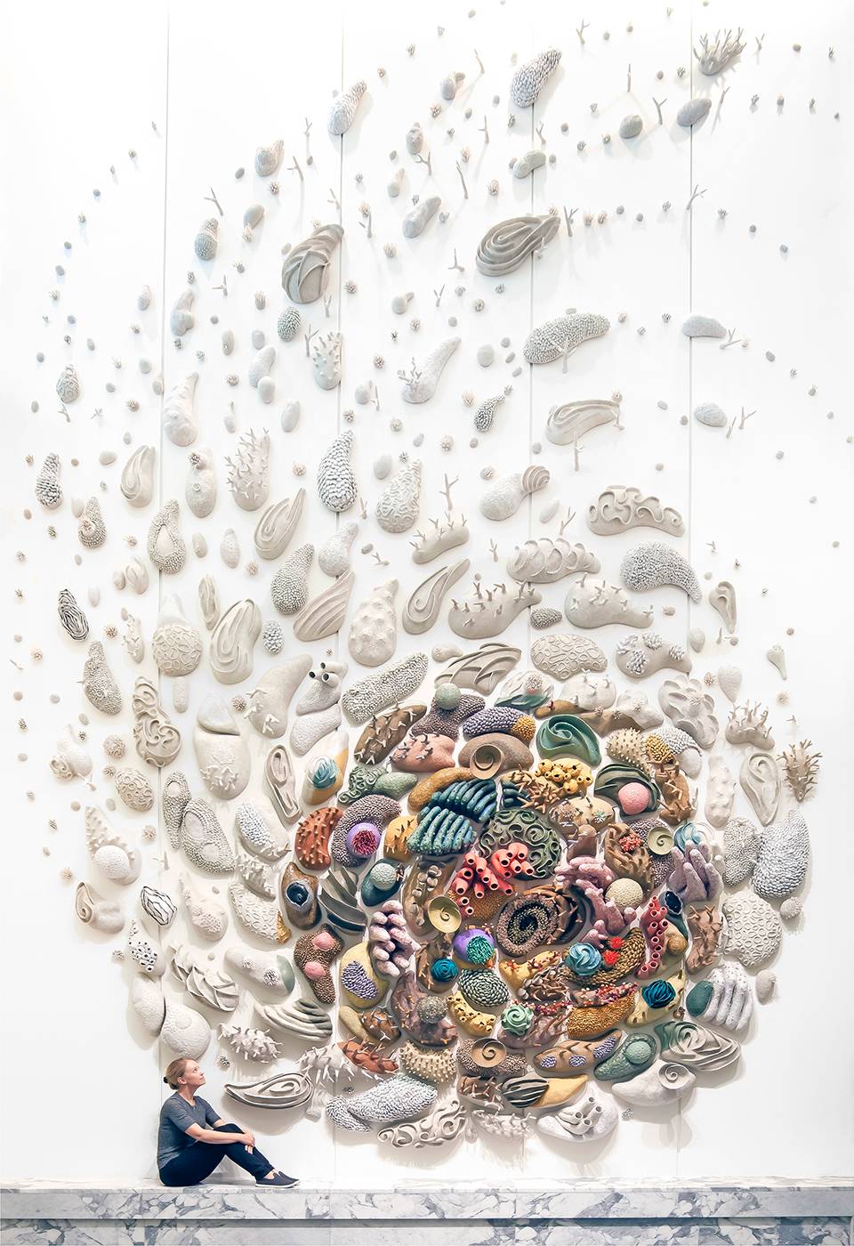 藝術(shù)家之所以選擇陶瓷作為材料,是因?yàn)轲ね梁陀粤系幕境煞帧妓徕}——同時(shí)也是構(gòu)成珊瑚礁骨骼的基本元素。