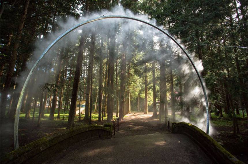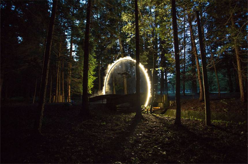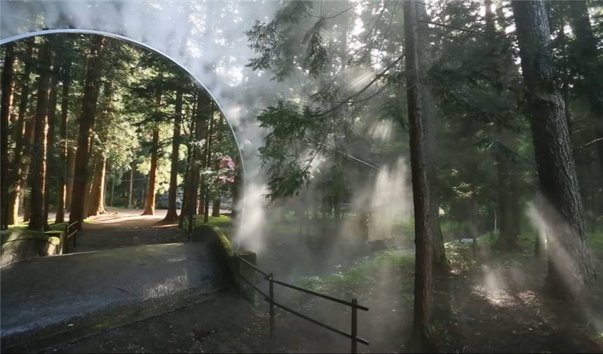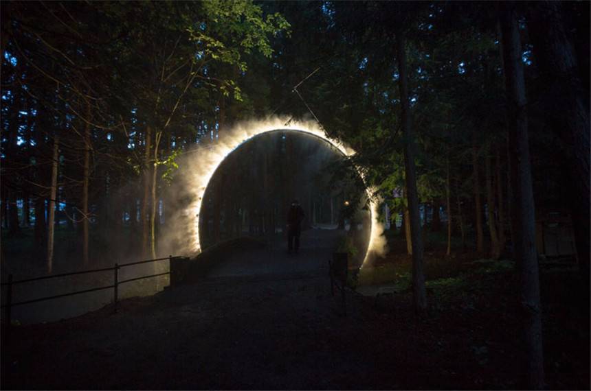 此外,它具有兩層 LED 燈條,調(diào)整在略微不同的色溫,使云霧從環(huán)上搖動(dòng),增添了質(zhì)感。 在白天,霧與環(huán)境條件一起工作,以在觀察者周?chē)a(chǎn)生閃爍的光線和彩虹,而在較暗的時(shí)間,霧從照明嵌入結(jié)構(gòu)內(nèi)。 附近的一個(gè)小屋附近有許多泵和過(guò)濾器,以使河水清潔并加壓霧氣。