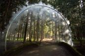 James Tapscott 的安裝是直徑 6 米的鋼環(huán),現(xiàn)場(chǎng)安裝有集成霧化噴嘴和照明,并包裹激光切割丙烯酸鏡,以幫助其與周?chē)h(huán)境融合。