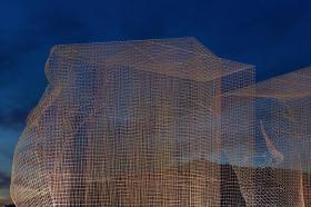 《邊界》標(biāo)志著具象雕塑的回歸,同時(shí)也提供了城市尺度的新視角。這場(chǎng)介入反映了公共空間作為互動(dòng)舞臺(tái)的意義:空間的感知被瞬間的偶遇打斷,從而產(chǎn)生出主觀的體驗(yàn)和記憶?!叭毕奈镔|(zhì)”(Absent Matter)是Tresoldi的獨(dú)特詩(shī)學(xué),它以金屬絲網(wǎng)的形式被展現(xiàn)出來(lái),成為一種非物質(zhì)的建筑:一個(gè)縹緲的空間,在各種催化作用和共情作用下展現(xiàn)出獨(dú)特的韻律。