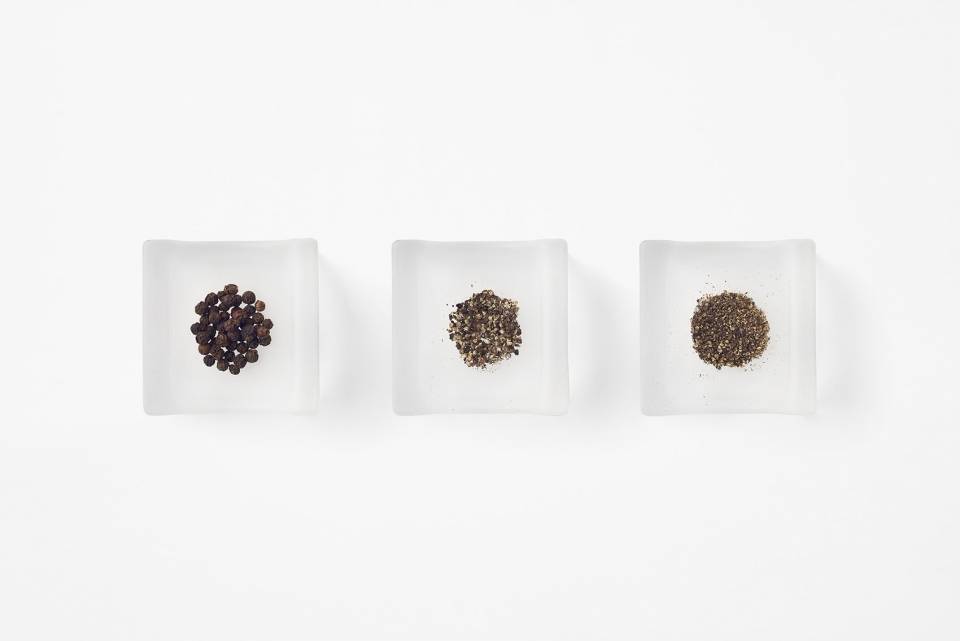 以往的胡椒研磨器都是將干燥的胡椒顆粒放在瓶中,然后通過旋轉(zhuǎn)機(jī)構(gòu)或使用杠桿的力量利用內(nèi)部刀片研磨胡椒。然而,為了實(shí)現(xiàn)更精細(xì)的研磨并帶出胡椒的芳香品質(zhì), nendo 選擇了古老的研杵法。這種裝置自古以來(lái)就被世界各地的藥劑師,科學(xué)家和廚師使用,這比普通的研磨方法更適合該項(xiàng)目。