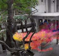 采用明亮的色彩以視覺手法有力地強調污染問題的飽和狀態(tài)。作品運用污染性材料制造一種虛幻美感,其藝術色彩與商業(yè)消費制造聯系在一起,呈現出一種迷幻的外在誘惑性,這種誘惑即是快消費的形式美感。