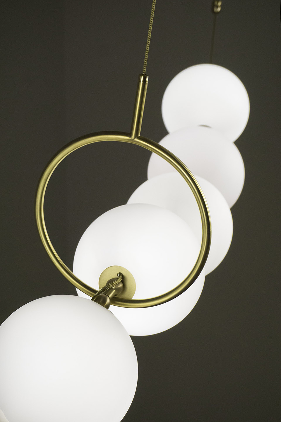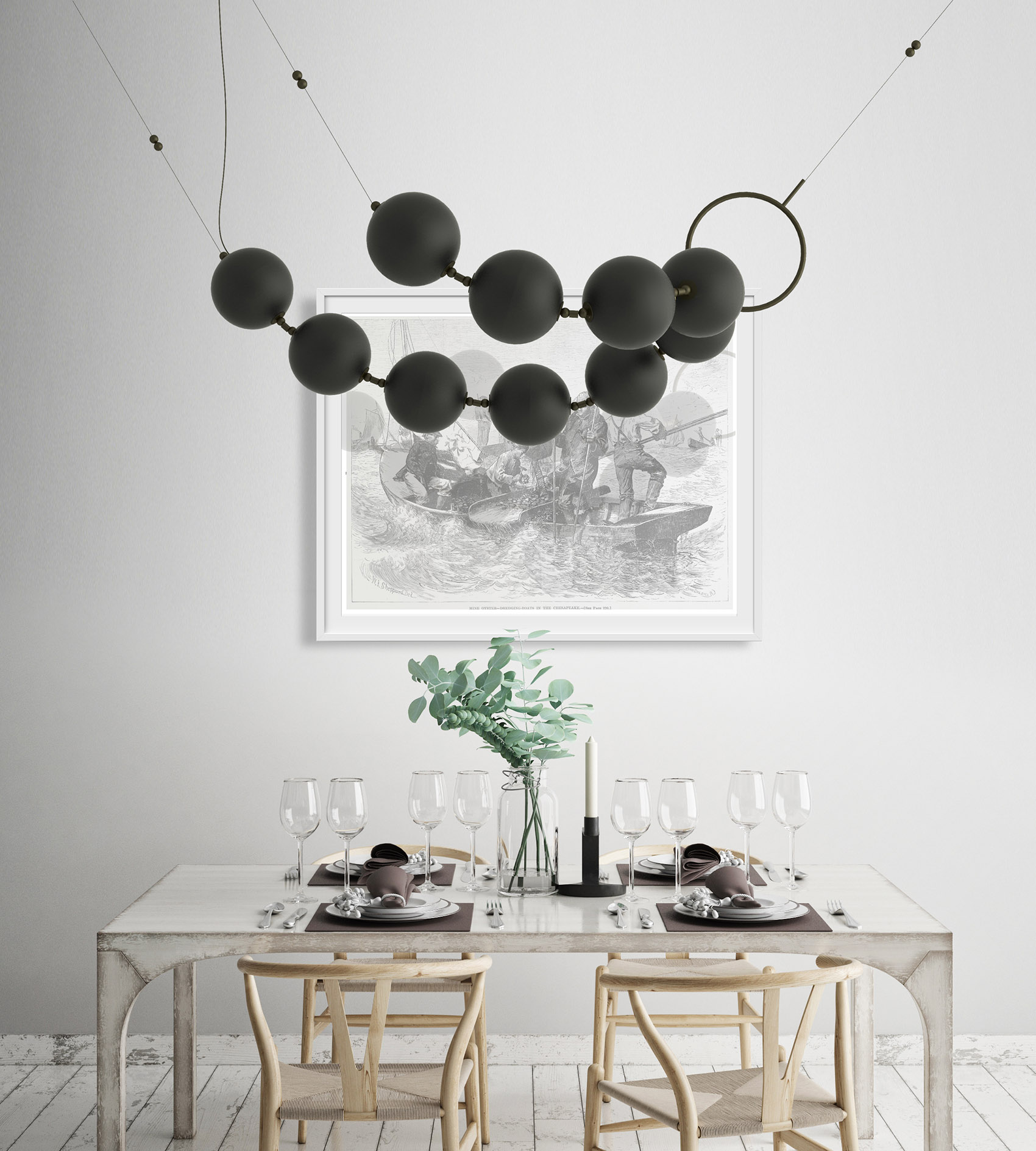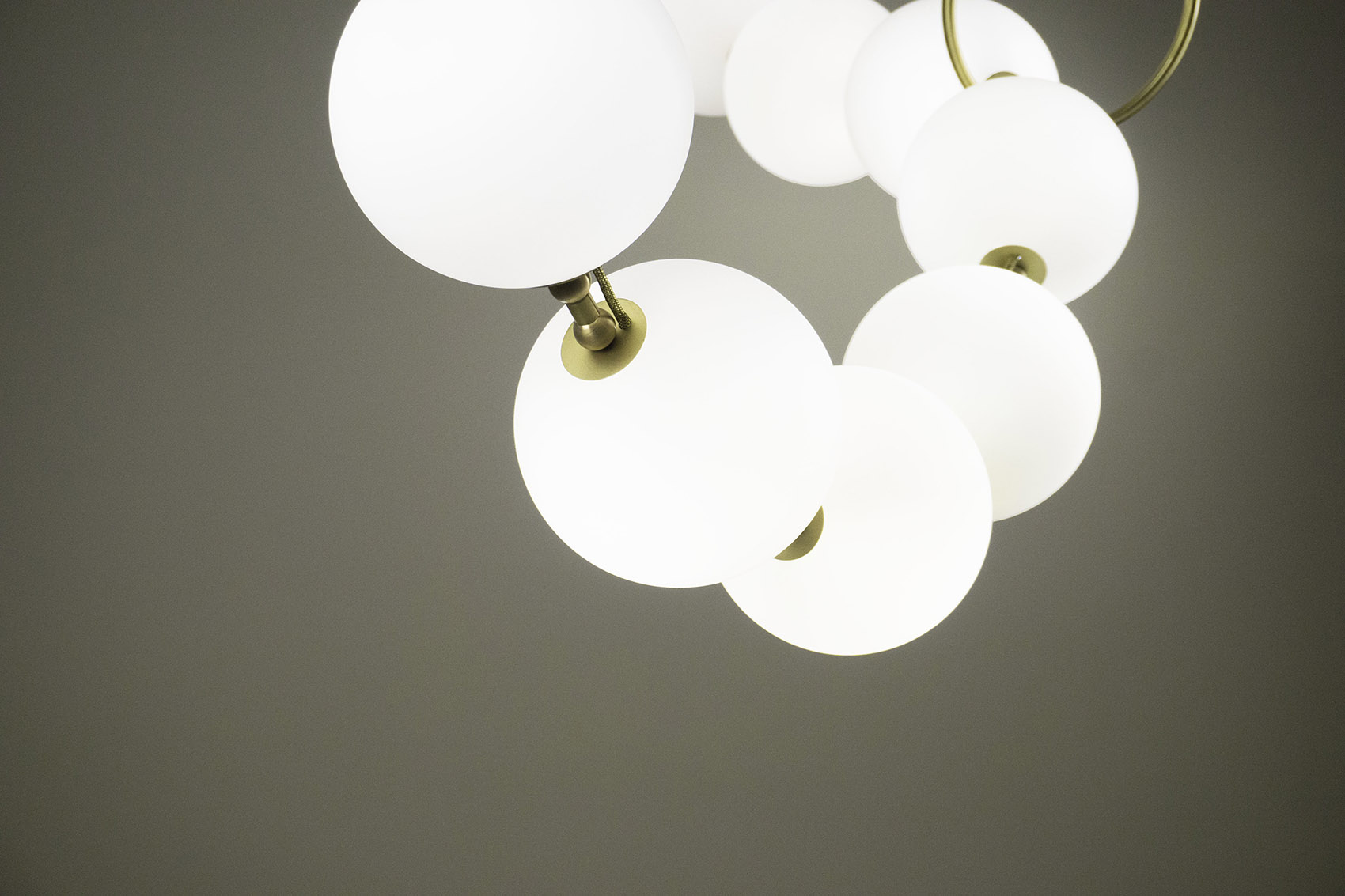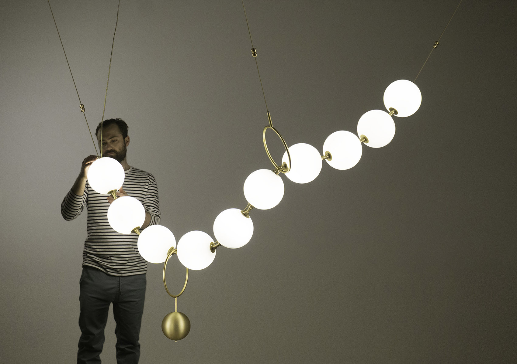 Coco從香奈兒的珠寶和時裝中汲取靈感,其設(shè)計猶如一串發(fā)光珍珠項鏈。10個手工吹制的玻璃球以柔性方式連接,實現(xiàn)了靈活性。此外,燈上懸掛的配重、掛鉤、天花板緊固件和圓環(huán)相互補充,能夠在解決平衡問題的同時滿足多種環(huán)境和空間的使用需要。Larose Guyon的設(shè)計美學(xué)超越了視覺層面,從情感和行為的角度來專注于燈具的設(shè)計,在為人們聚集的場所提供光亮的同時,還為這些場景賦予了詩意的氛圍。