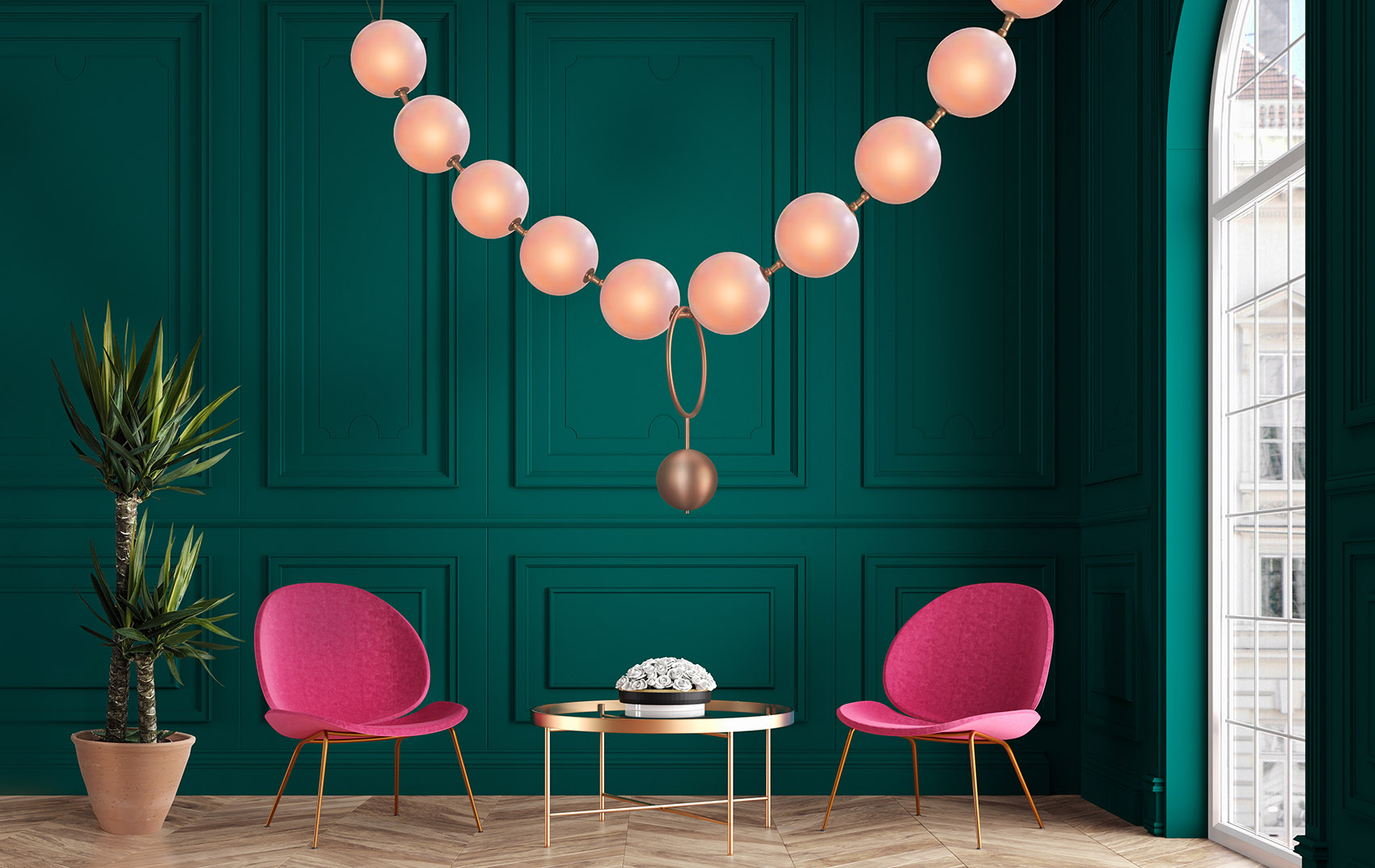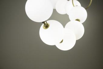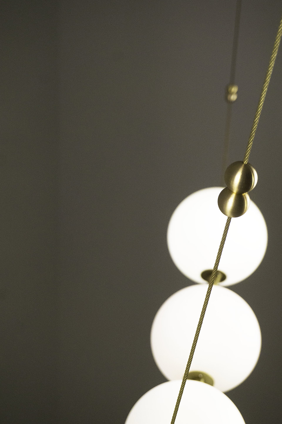 Larose Guyon是來自加拿大、致力于手工創(chuàng)作的高端設(shè)計品牌。2019年1月,Larose Guyon官方在紐約發(fā)布了一款融合了珠寶與燈光設(shè)計的獨特產(chǎn)品,并將其命名為“Coco”。這款燈具由10個手工吹制的圓形光源構(gòu)成,看上去猶如一串溫潤的珍珠項鏈?!癈oco”的命名也從側(cè)面致敬了加布里?!は隳蝺旱膬?yōu)雅美學(xué)。