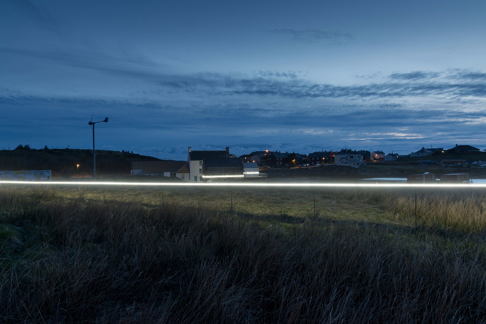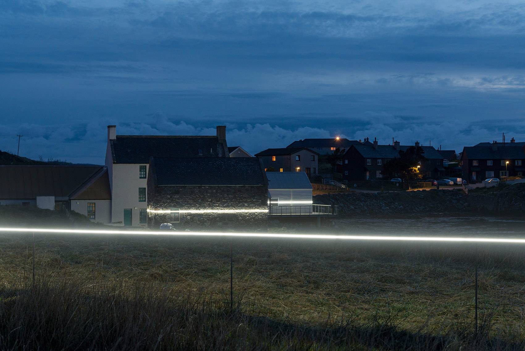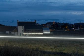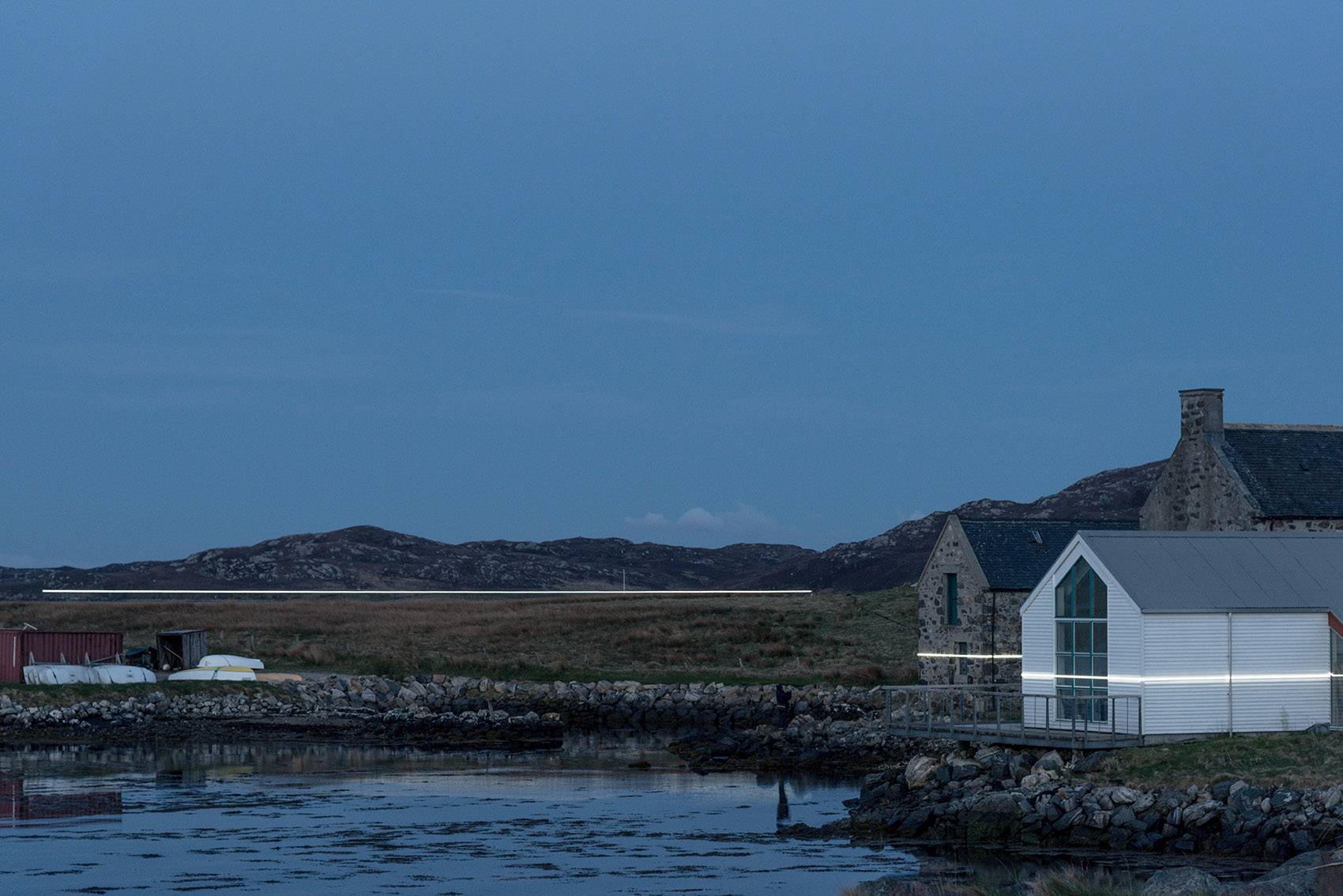 本裝置對于低洼式群島,如蘇格蘭西海岸之外的外赫布里底群島(Outer Hebrides)內的尤伊特斯島(Uist)等,以及本裝置的所在地——Lochmaddy內的Taigh Chearsabhag博物館兼藝術中心有著極為重要的意義。因為鑒于已經預測到的海洋風暴潮,該藝術中心已經不能再在其現(xiàn)有的基地上繼續(xù)發(fā)展了。