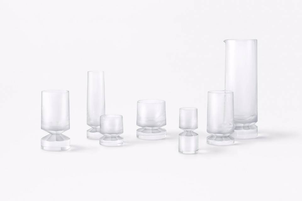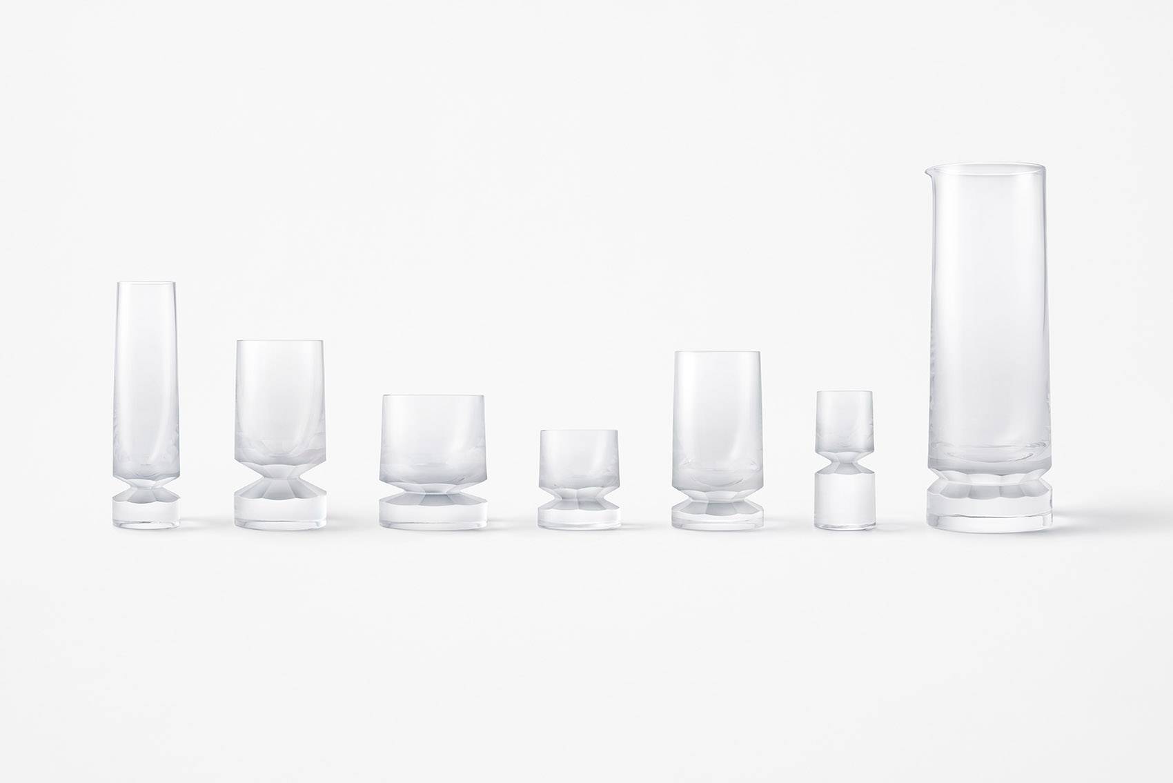 beaver系列是nendo專門為捷克水晶玻璃制造商Lasvit設(shè)計(jì)的一組六件套玻璃器皿,包括葡萄酒杯、平底玻璃杯、威士忌酒杯、玻璃瓶、長笛玻璃杯、迷你酒杯(一口杯)