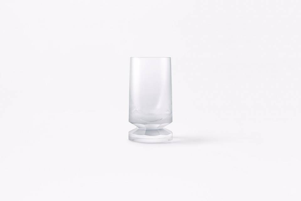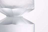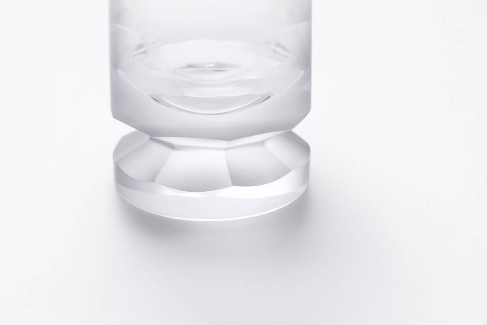 常規(guī)的玻璃器皿制作模式是將杯頸和杯子基座粘結(jié)到玻璃底上,beaver的設(shè)計(jì)方法與常規(guī)模式截然不同,杯子仿佛是一棵即將倒下的樹木,形成了一種緊迫感。擁有隨機(jī)切割紋路的玻璃杯產(chǎn)生復(fù)雜的光線反射,閃爍著水晶所特有的微光;玻璃器皿這種深度打磨和復(fù)雜拋光工藝的難度非常大,只有技藝精湛的玻璃工匠才能勝任。