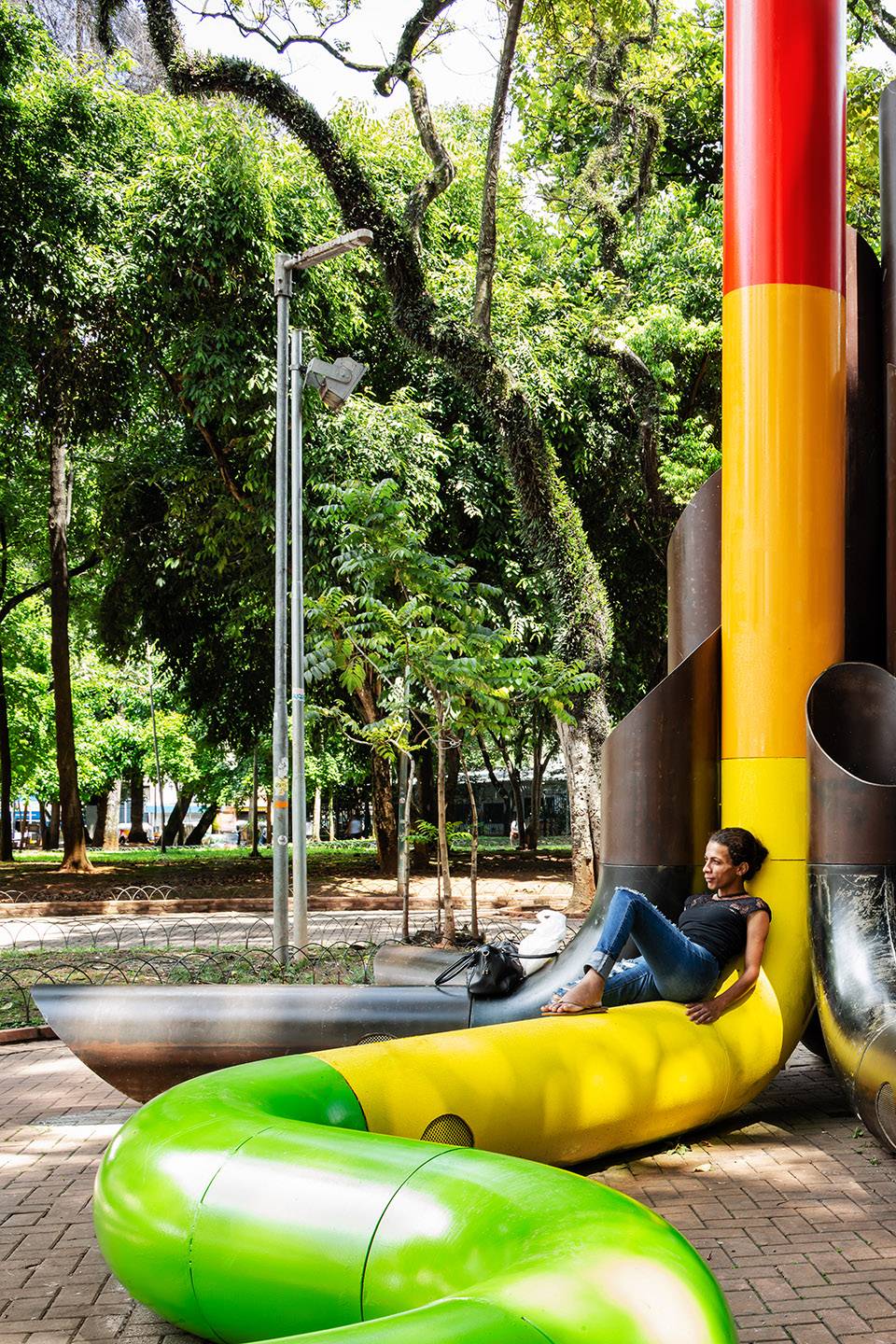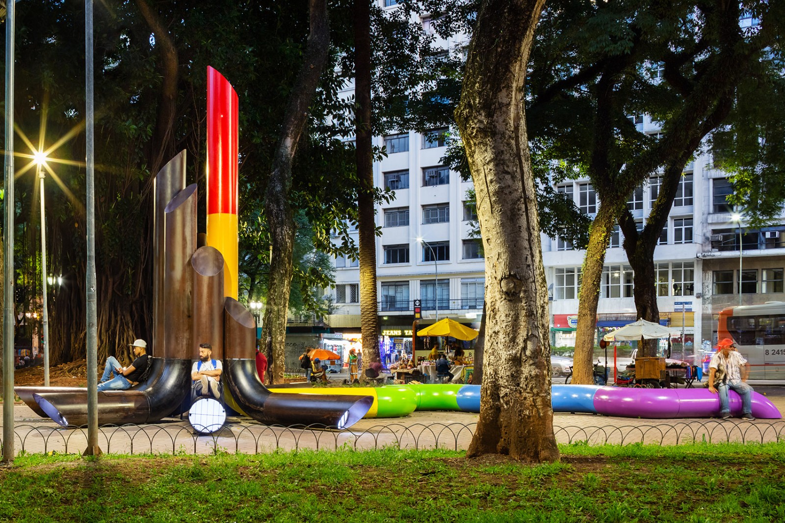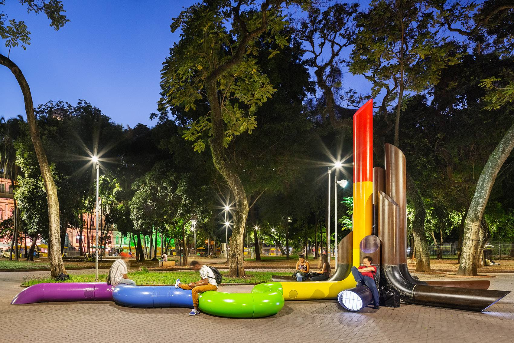 圣保羅Estúdio Guto Requena的新近項(xiàng)目——‘我的心跳與你同一節(jié)奏’(‘My heart beats like yours’)借助共鳴與行為設(shè)計(jì)的力量,向巴西的LGBT+社區(qū)致敬。這一大尺度互動(dòng)裝置集公共城市家具與雕塑與一體,以圣保羅標(biāo)志性的Pra?a da República為背景,1978年LGBT+積極分子團(tuán)體在這里舉行了第一次會(huì)議,如今在如織的行人與大量聚集的流浪人群之中,巴西社會(huì)多樣性與不平等性仍隨處可見(jiàn)。