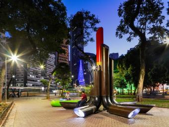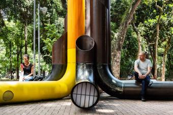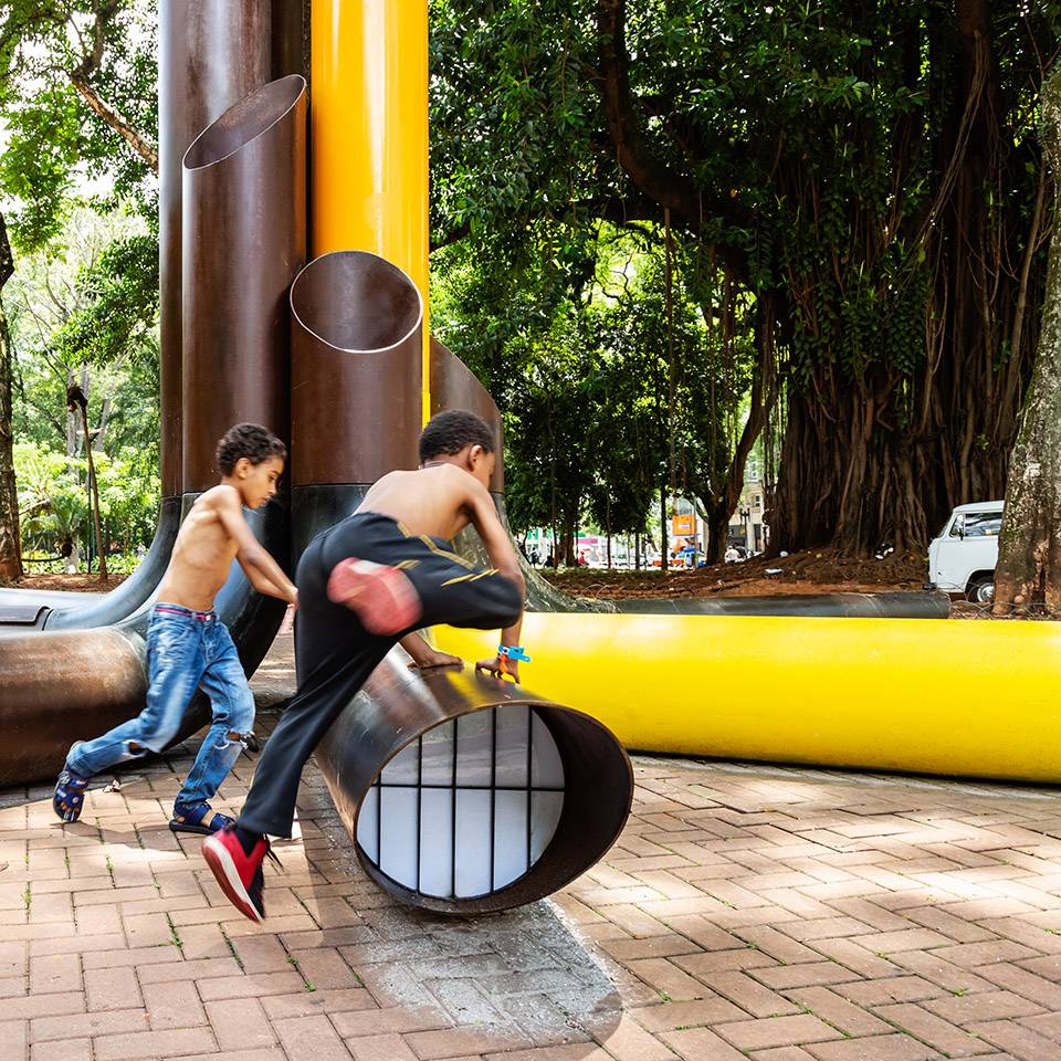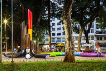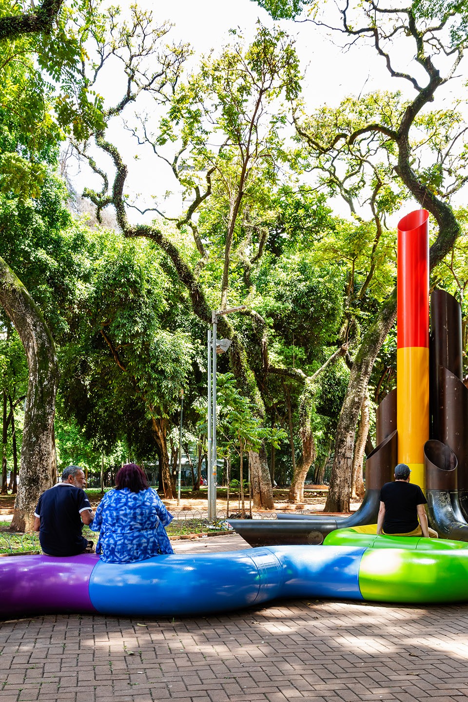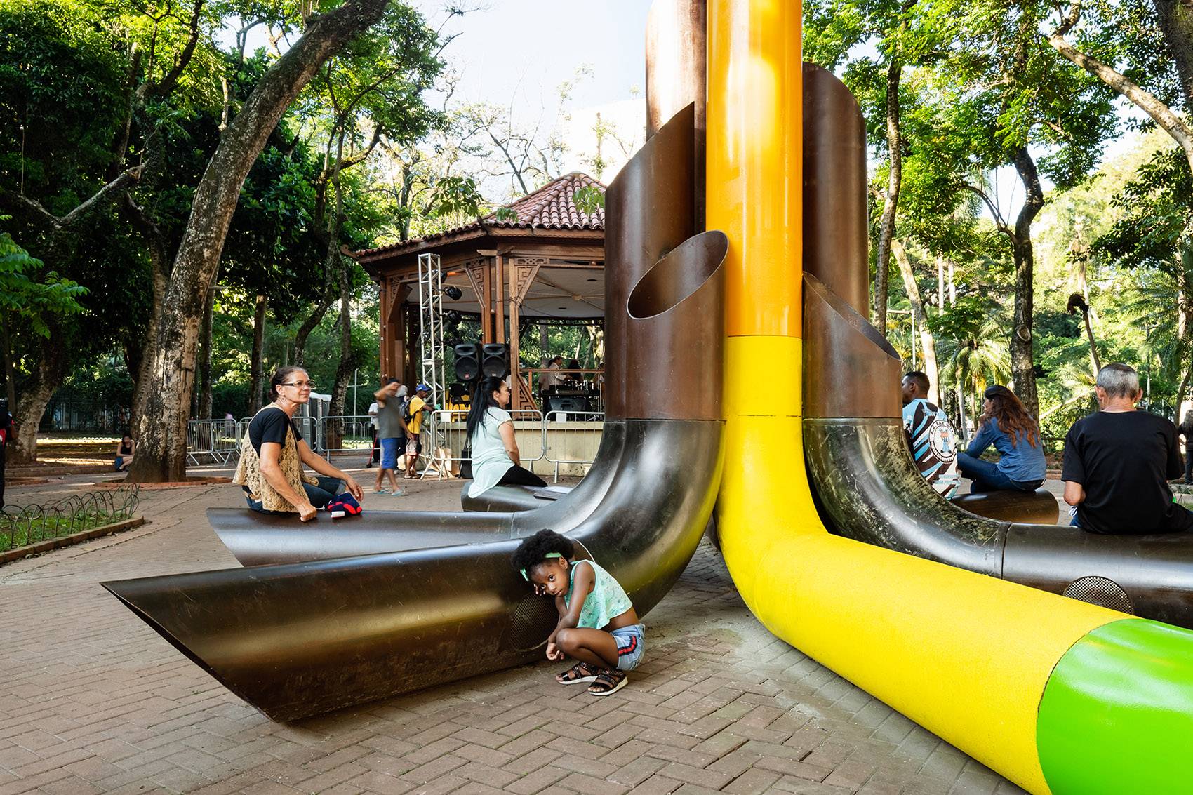 圣保羅Estúdio Guto Requena的新近項(xiàng)目——‘我的心跳與你同一節(jié)奏’(‘My heart beats like yours’)借助共鳴與行為設(shè)計(jì)的力量,向巴西的LGBT+社區(qū)致敬。這一大尺度互動(dòng)裝置集公共城市家具與雕塑與一體,以圣保羅標(biāo)志性的Pra?a da República為背景,1978年LGBT+積極分子團(tuán)體在這里舉行了第一次會(huì)議,如今在如織的行人與大量聚集的流浪人群之中,巴西社會(huì)多樣性與不平等性仍隨處可見(jiàn)。