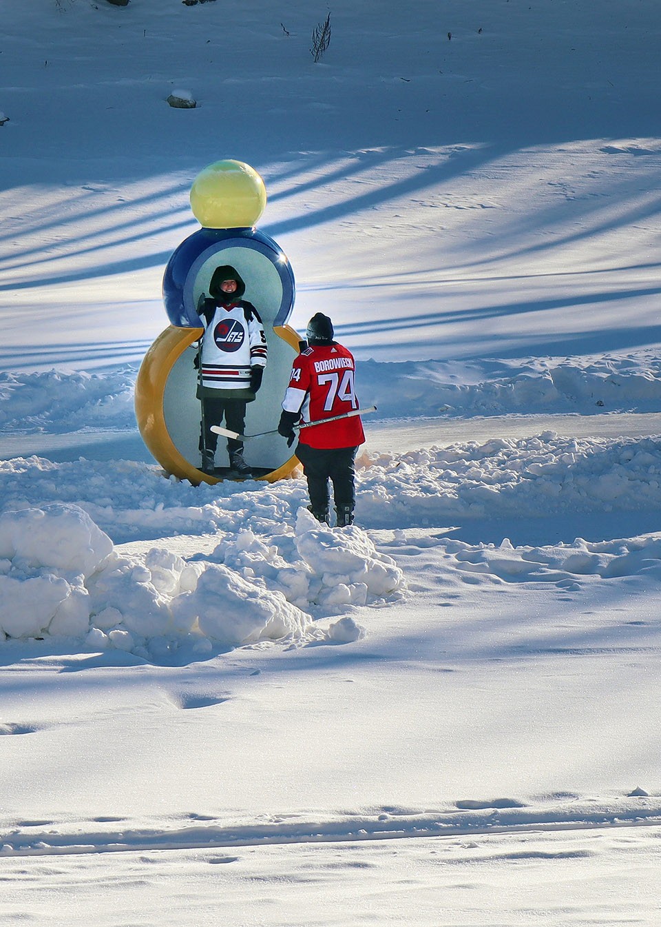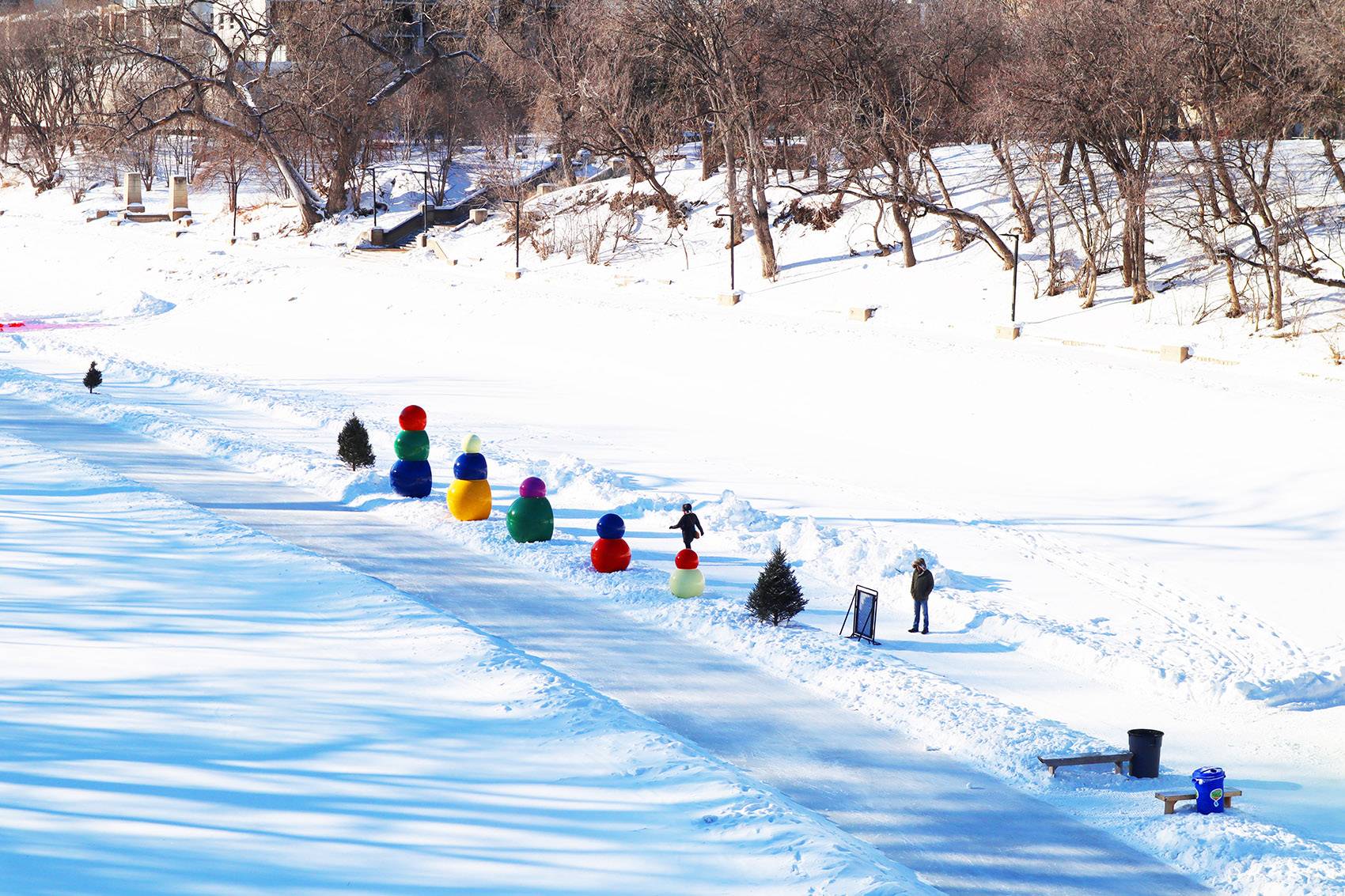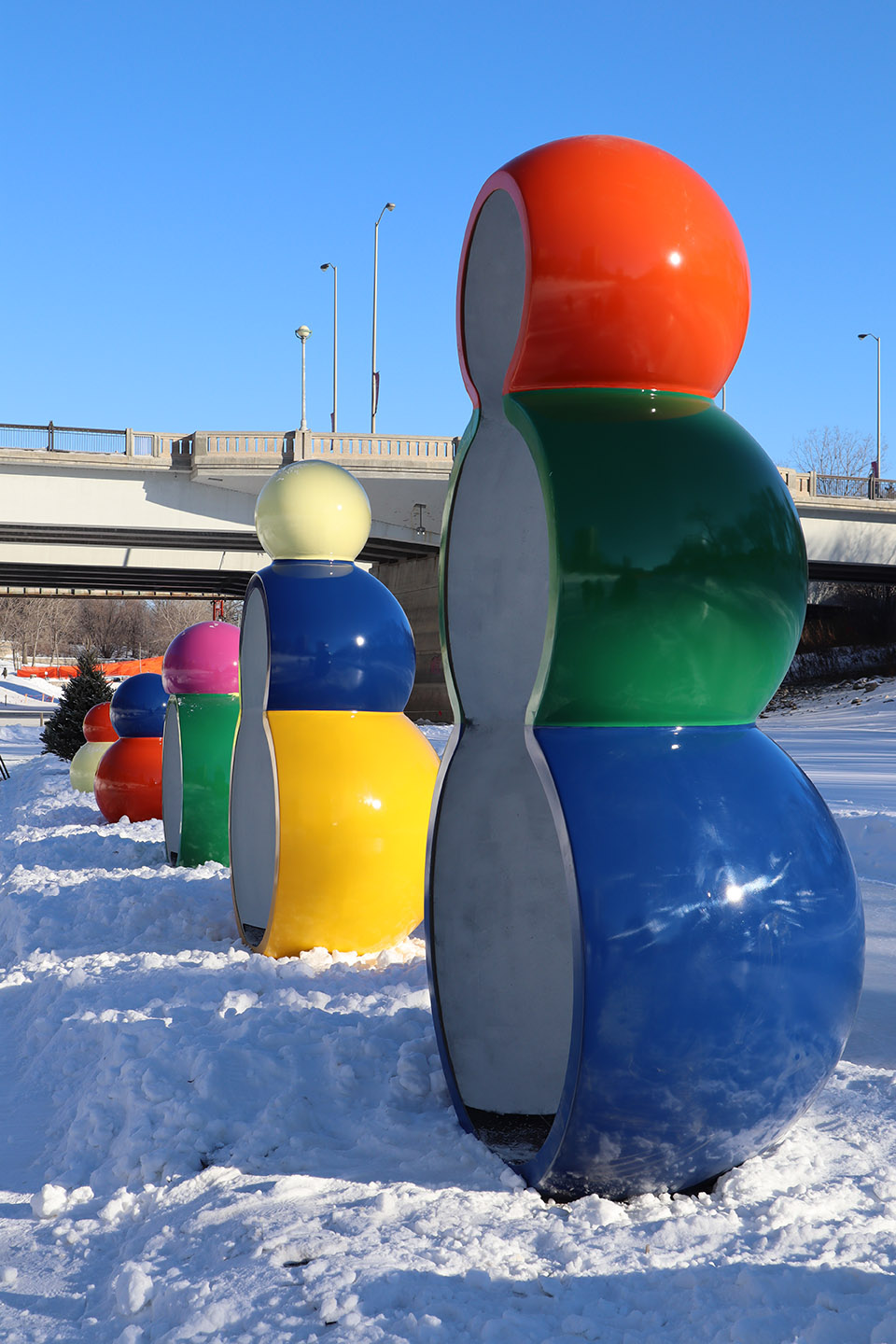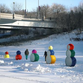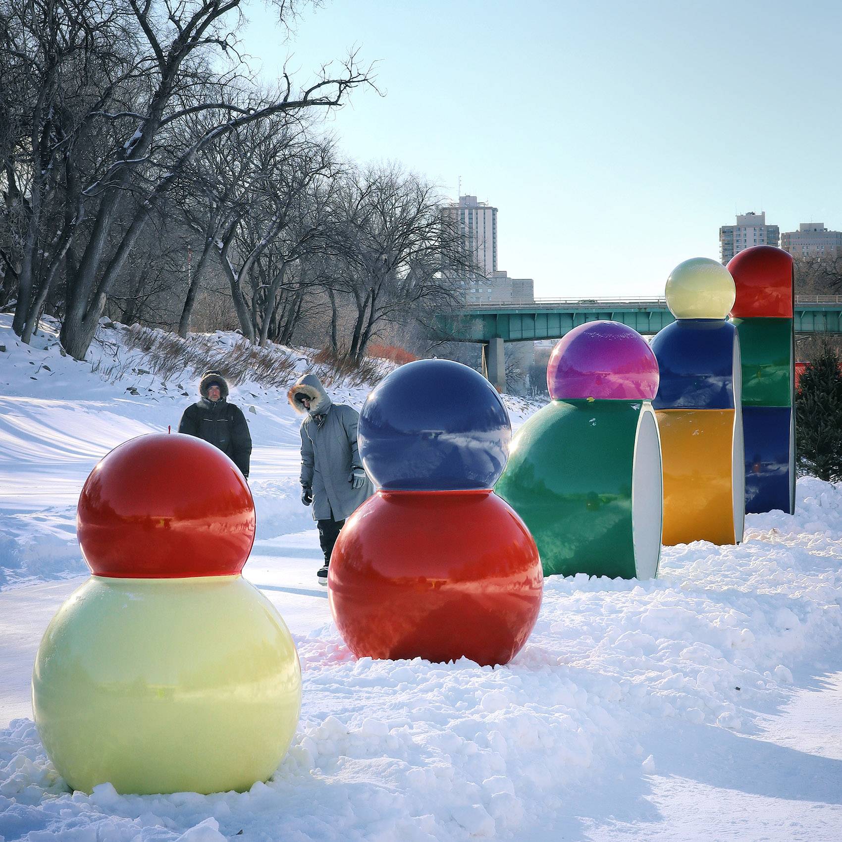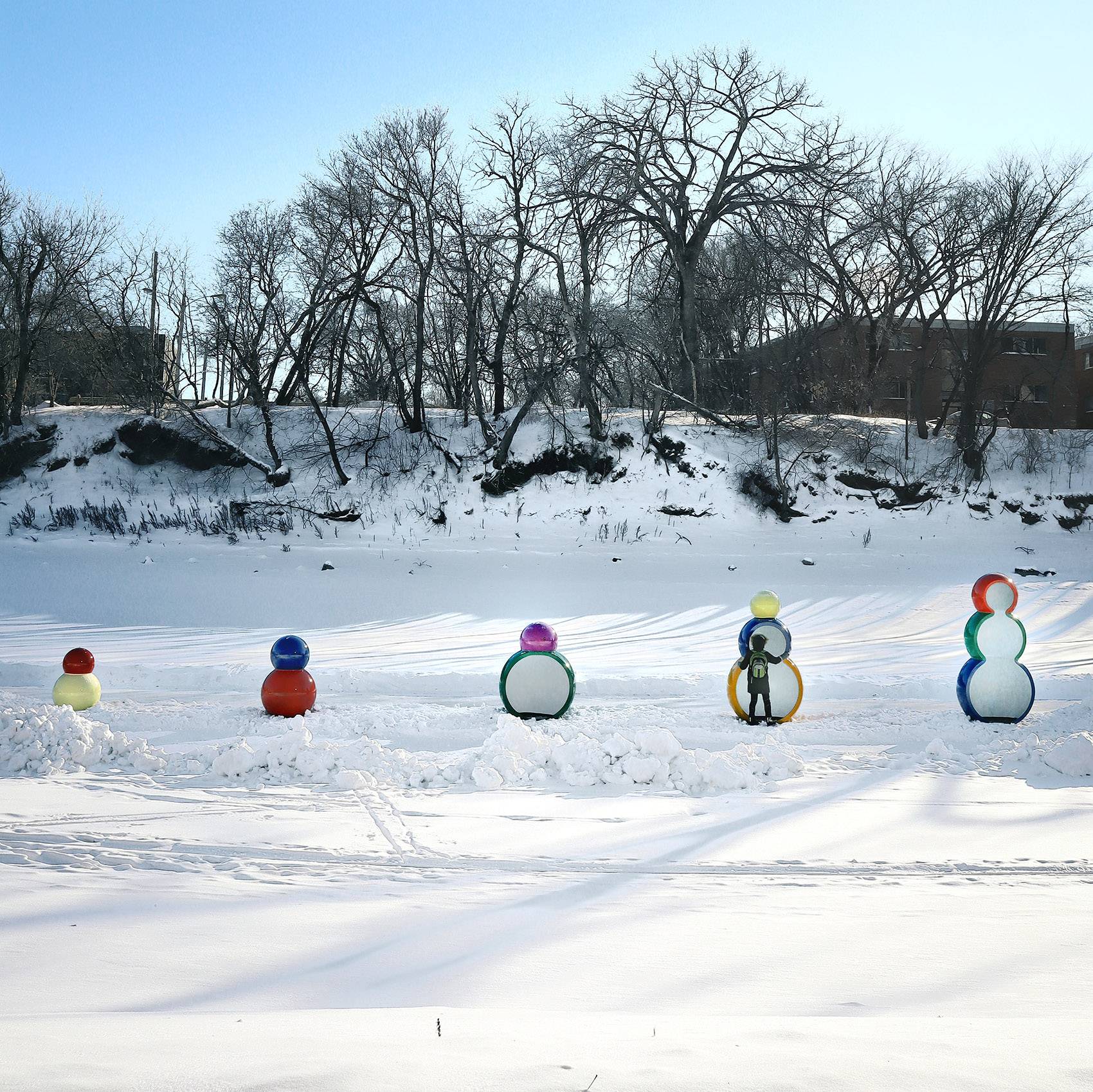 “天氣預(yù)報員”(Weatherman)是一系列互動藝術(shù)雕塑,形態(tài)模擬沿著紅河小徑景觀中人們熟悉的雪人。