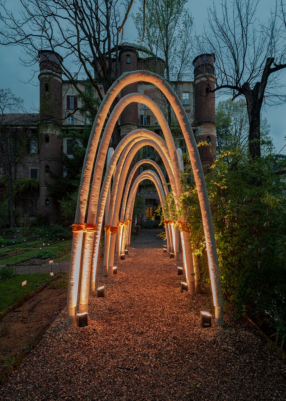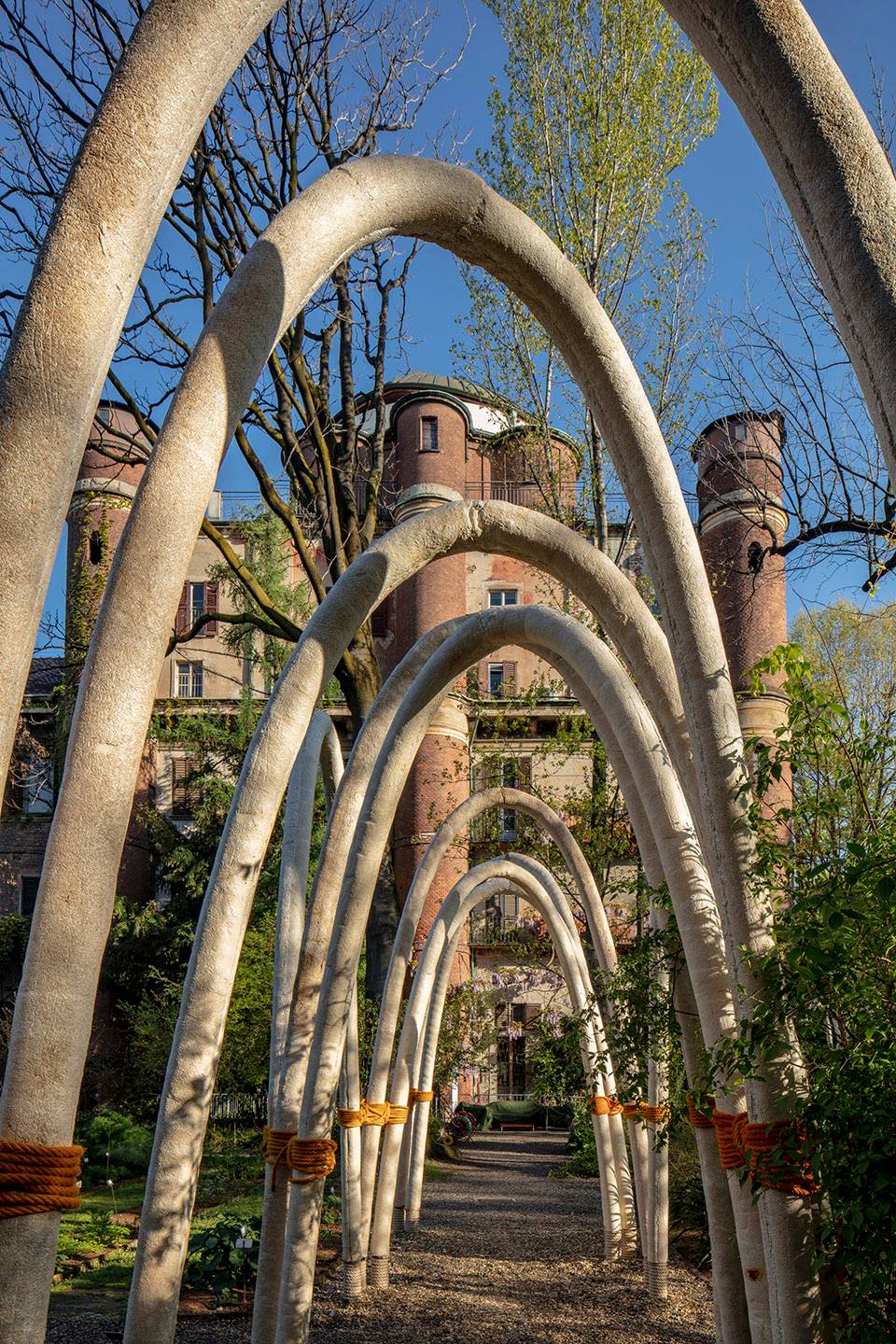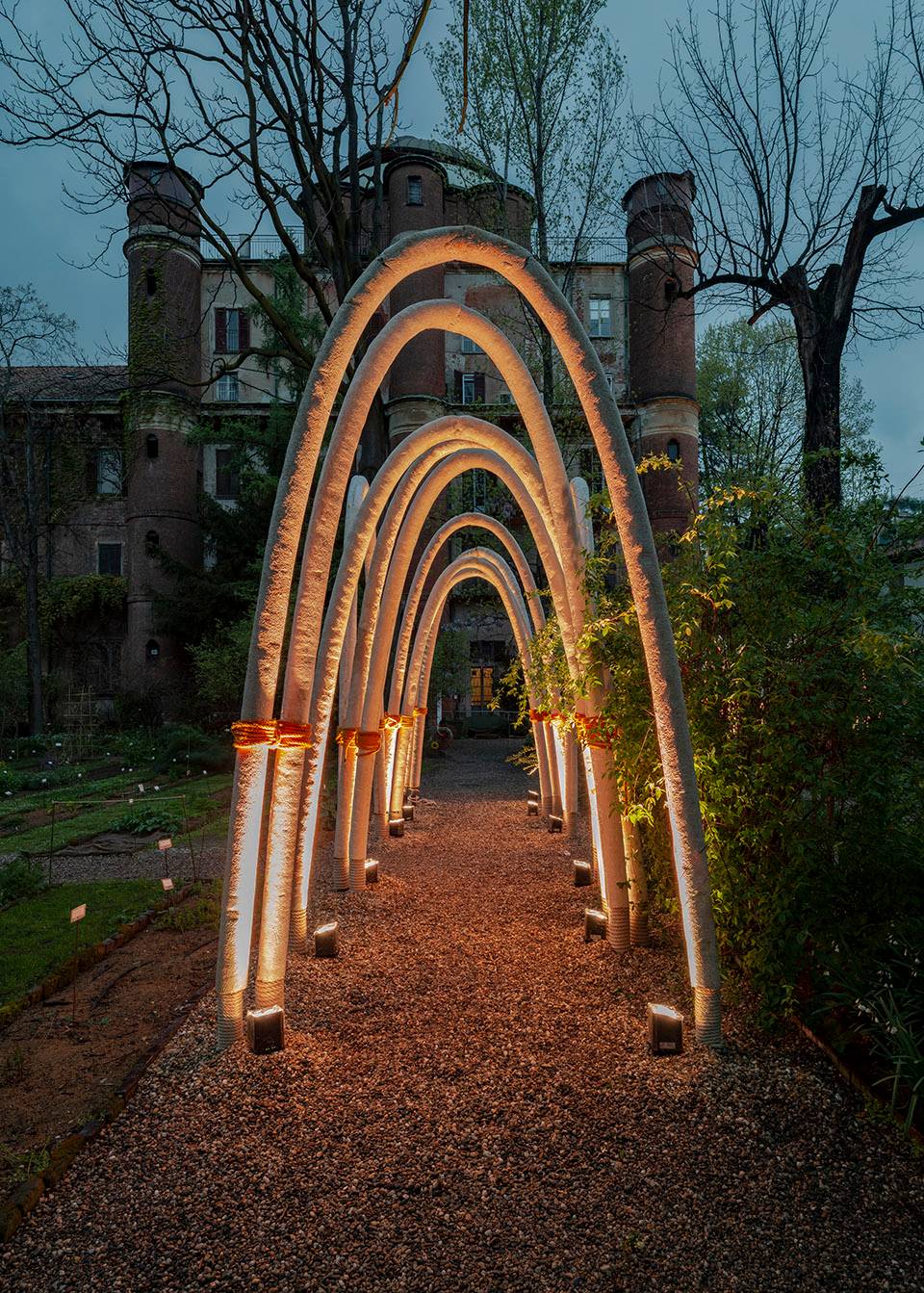 ▼菌絲體構(gòu)成60個4米高的拱門散布于Orto Botanico植物園中