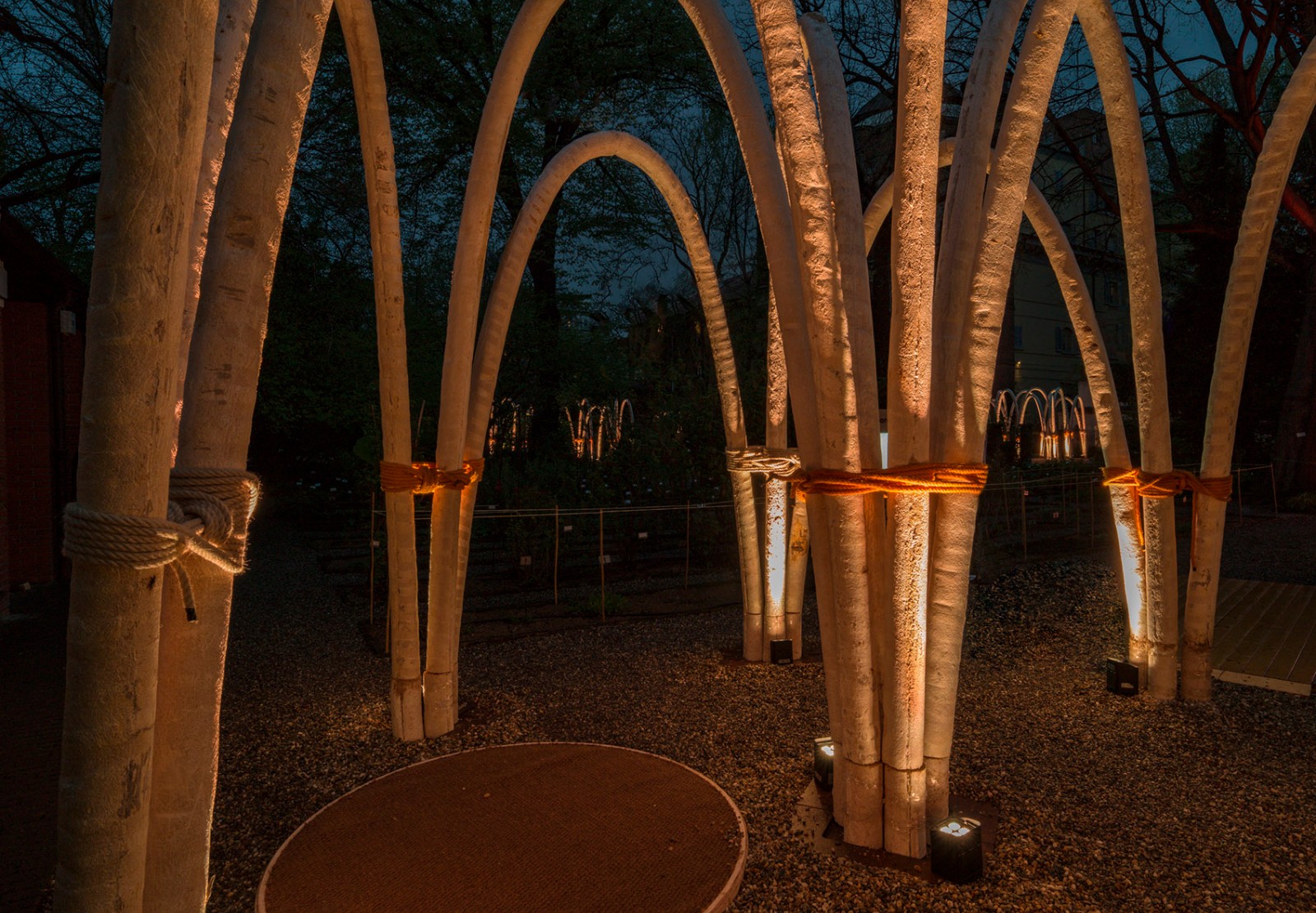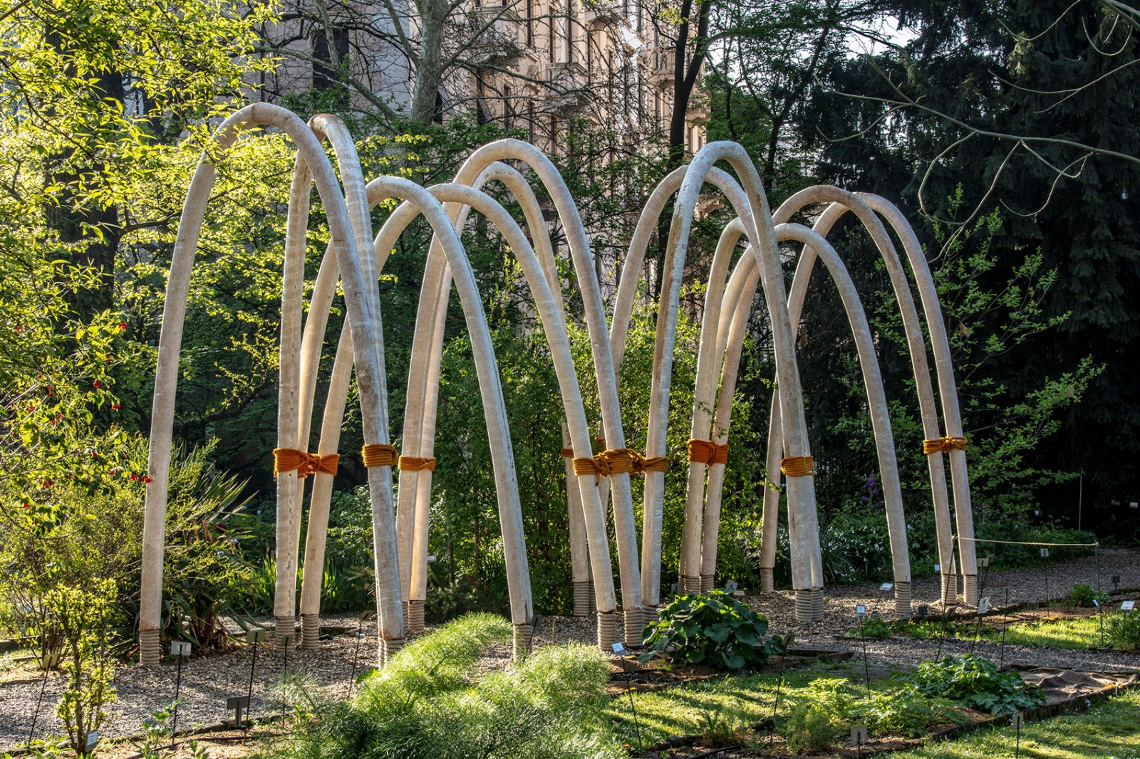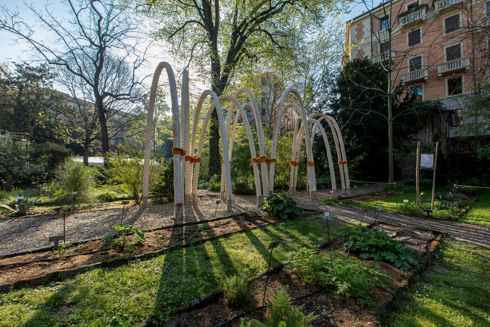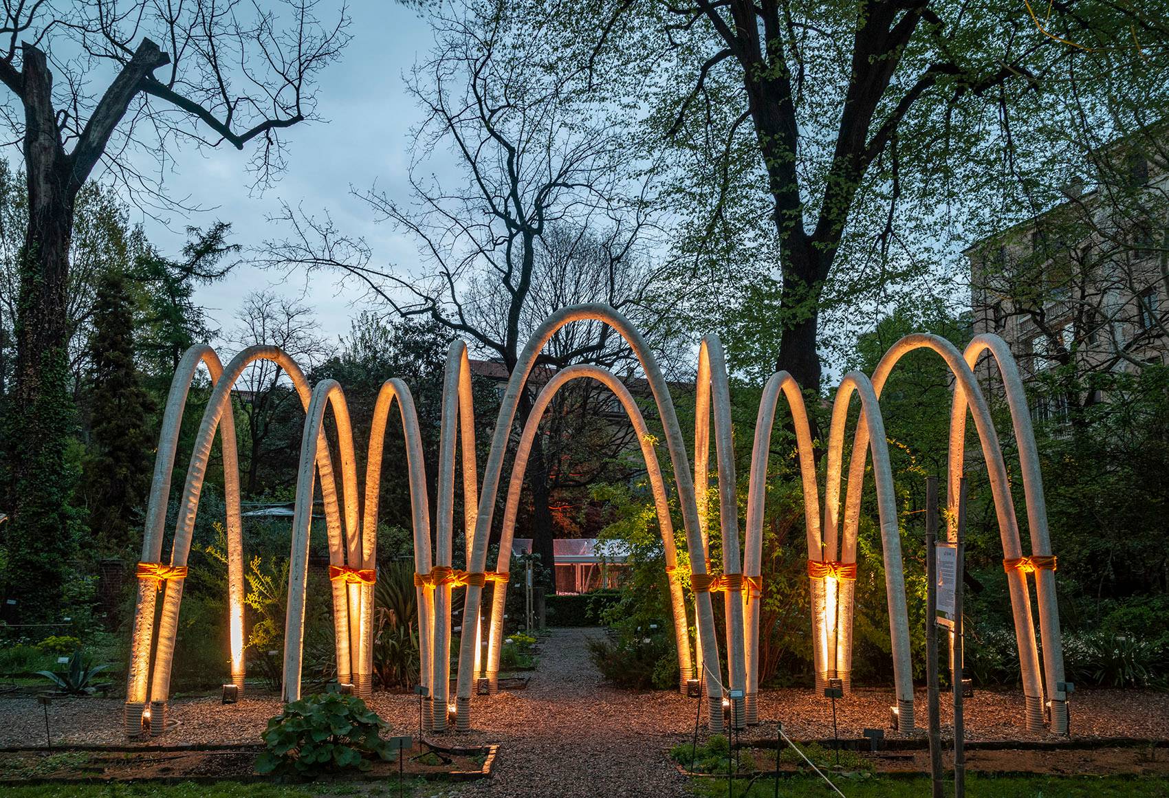 ▼菌絲體構(gòu)成60個4米高的拱門散布于Orto Botanico植物園中