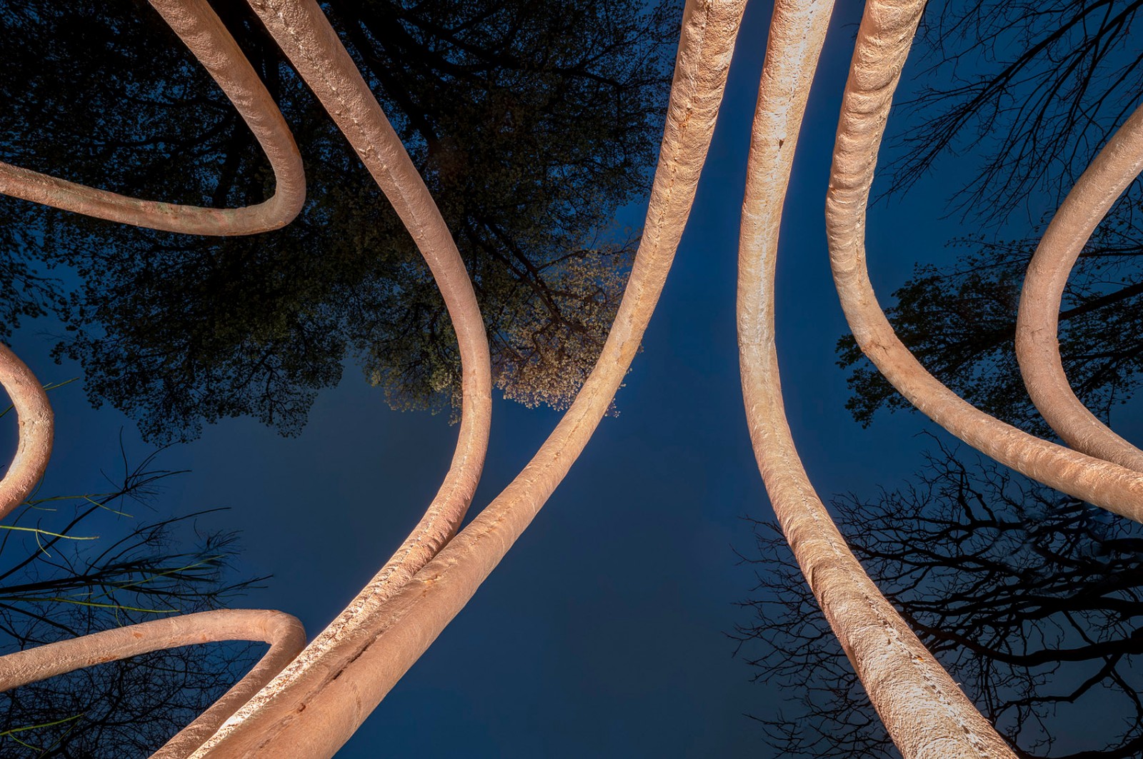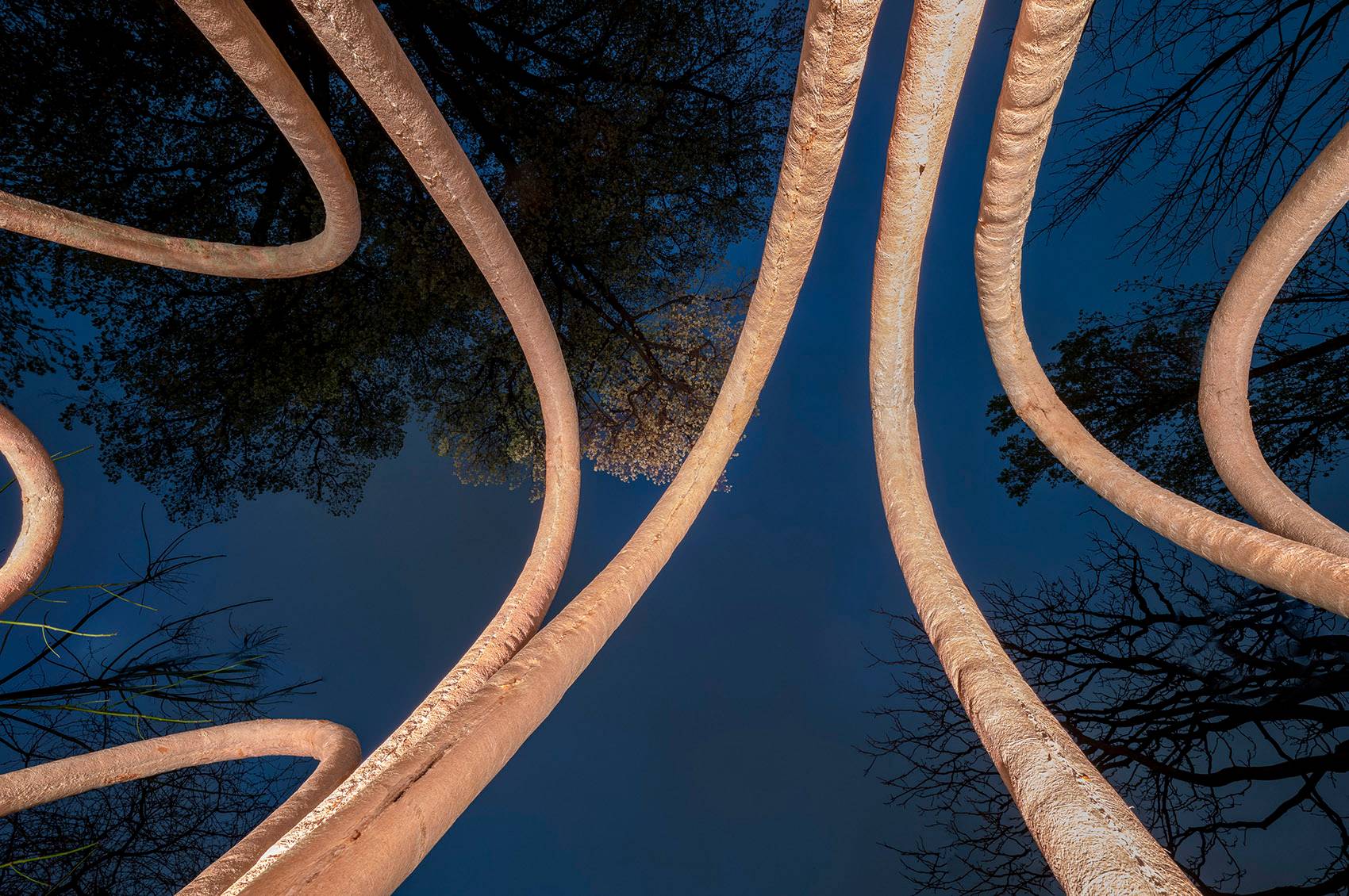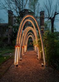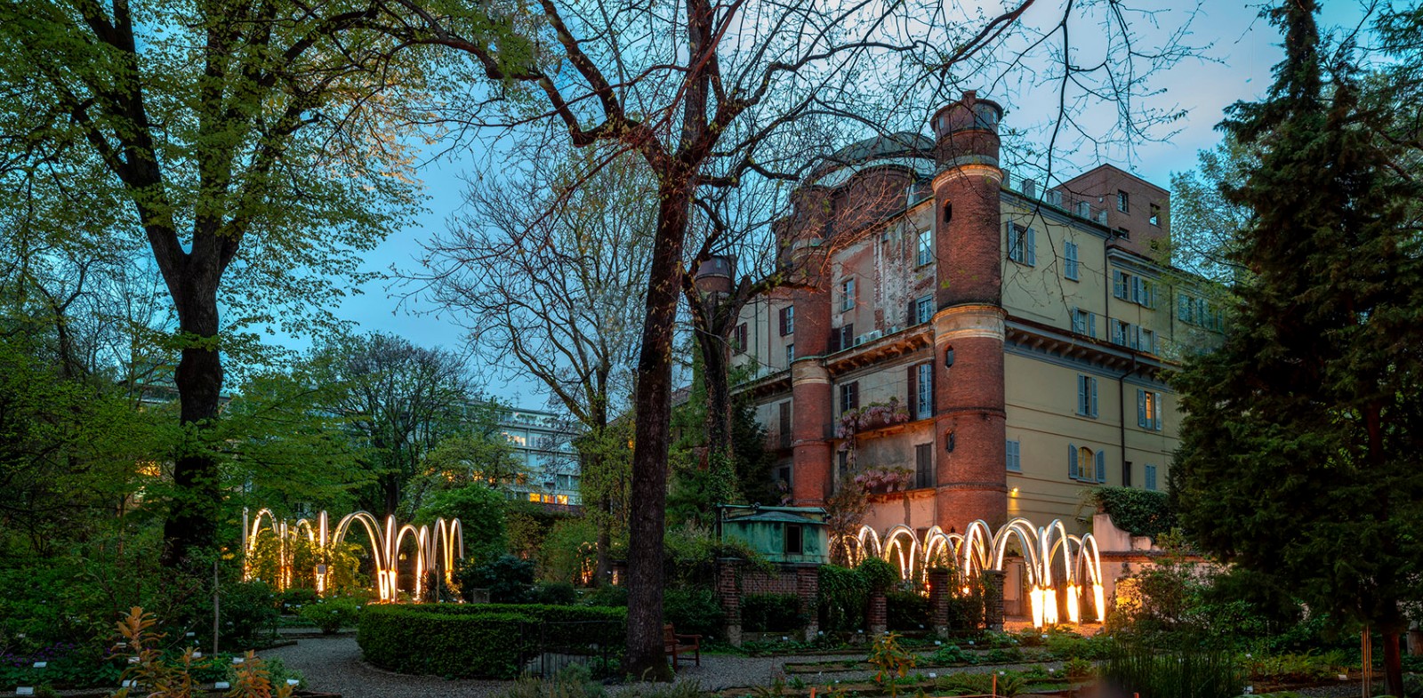 ▼燈光下的裝置與建筑、植物相映成趣?Marco Beck Peccoz