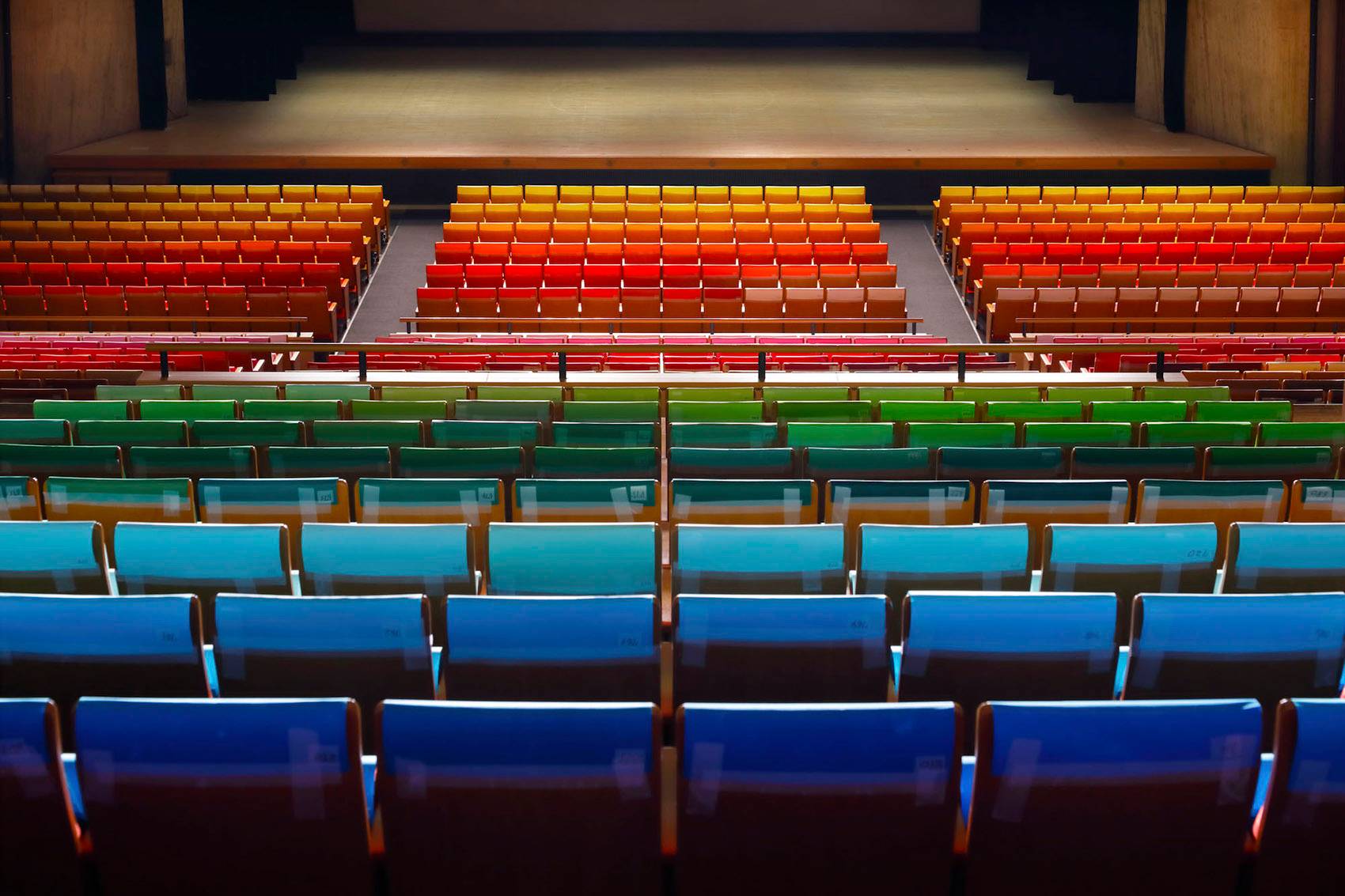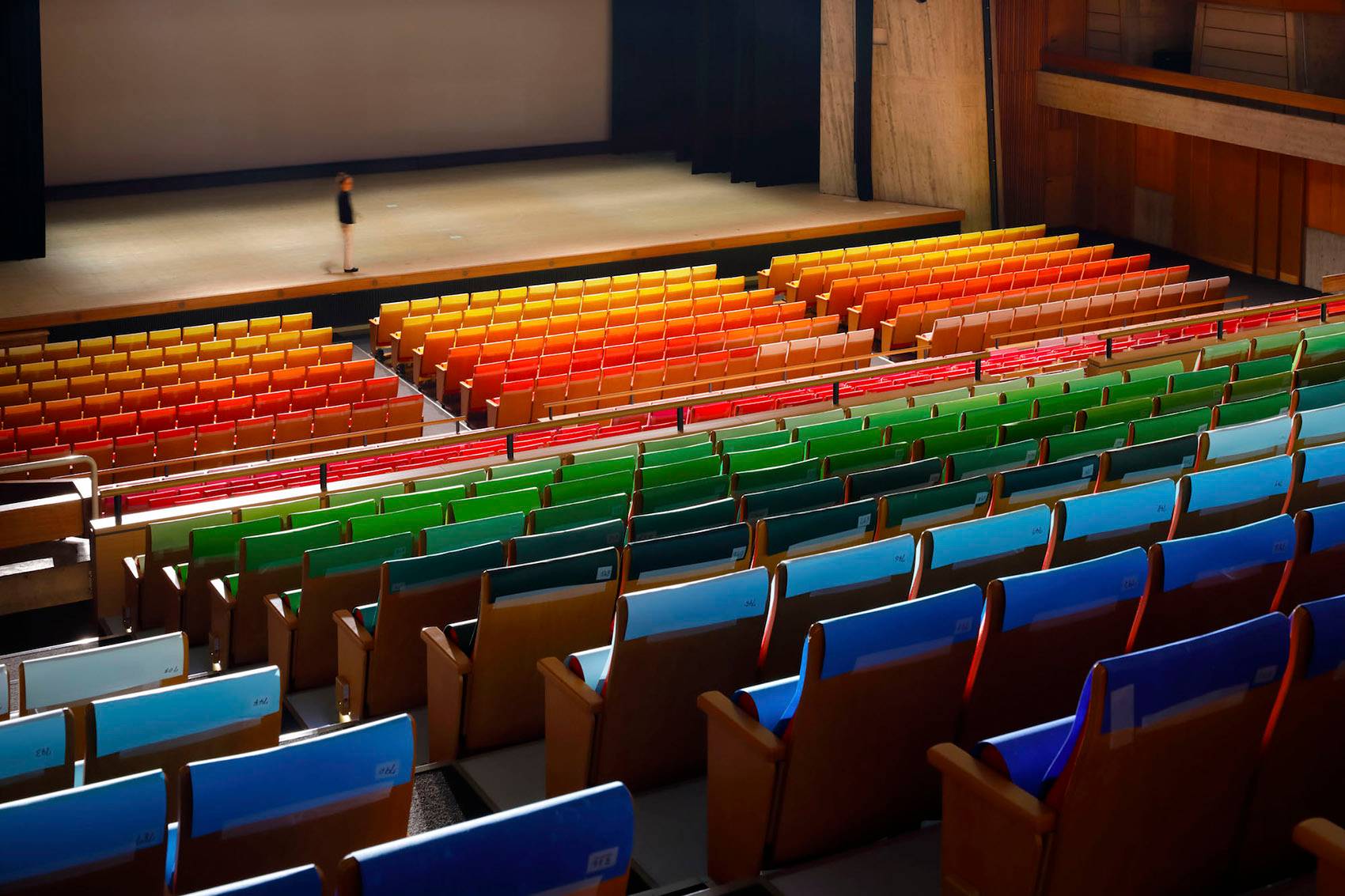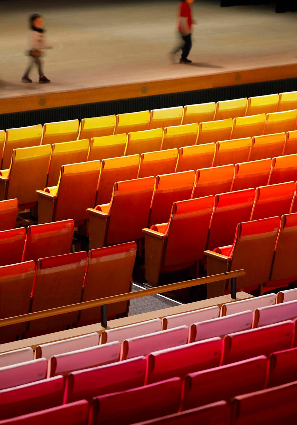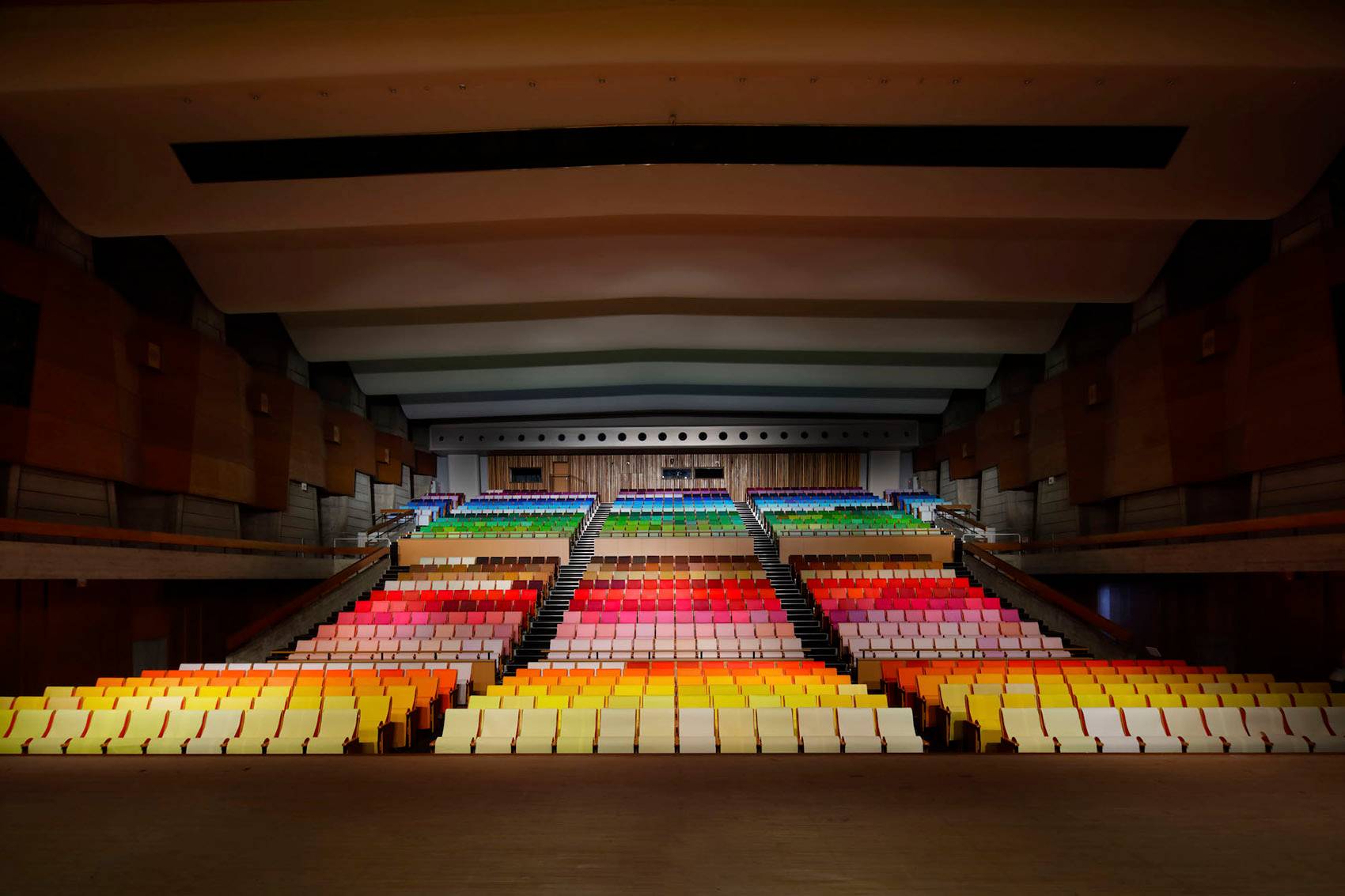 這個由1000種顏色的絲線打造而成的織品覆蓋了今治市禮堂(Imabari City Auditorium)的1002個座位,值得一提的是,該禮堂由著名建筑師丹下健三設(shè)計建造。明亮的色調(diào)不僅賦予整個空間一種能量,更創(chuàng)造出了與公共大廳天花板相聯(lián)系的迷人色彩。