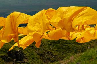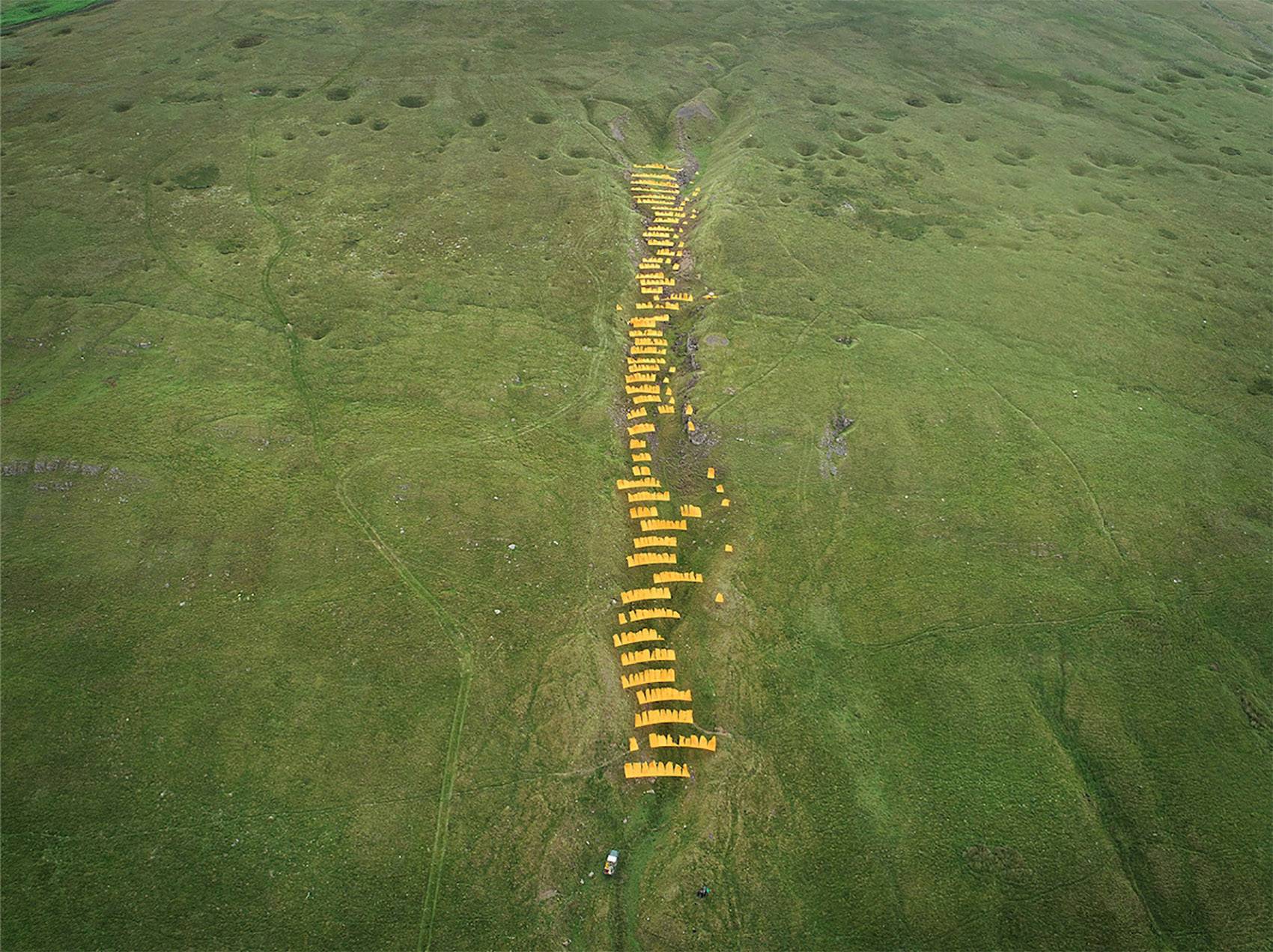 Hush是有史以來最巨大的藝術作品之一。它由著名的環(huán)境藝術家Steve Messam根據(jù)North Pennines獨一無二的地質風貌構思而出。整個作品長370米,寬50米,最高點達45米,幾乎有四個足球場那么大。而以體積巨大聞名、現(xiàn)位于泰特現(xiàn)代美術館的Turbine Hall和它比起來也只能相形見絀。同時,作品中還使用了超過5千米的布料。