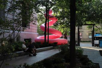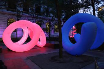 這些發(fā)光的藝術(shù)裝置與克利夫蘭公共圖書館閱讀花園的景觀形成了有趣的互動(dòng),在樹木的掩映下與綠色的環(huán)境融為一體。