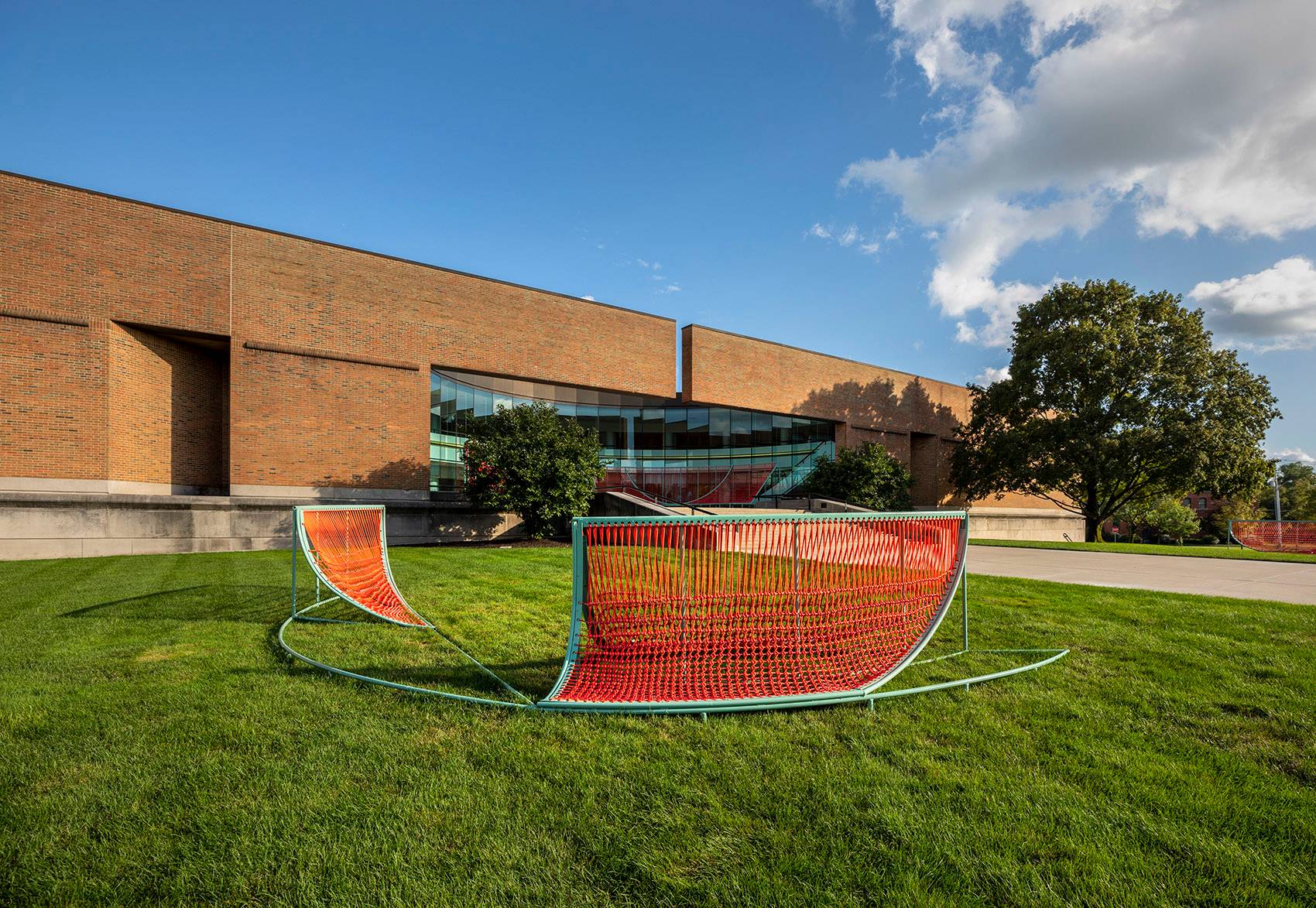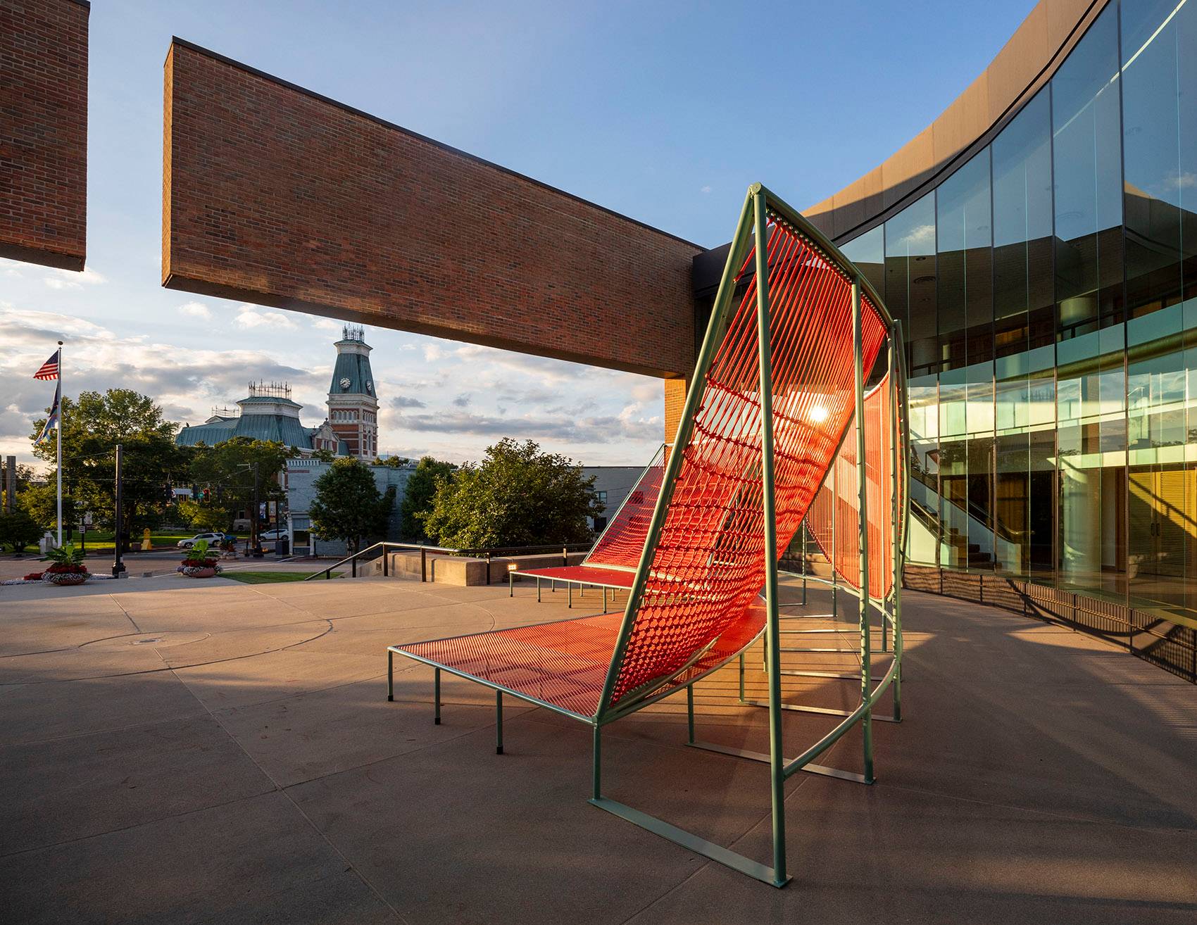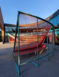 由Bryony Roberts工作室依據(jù)場地特征而打造的建筑裝置“柔軟城市”(Soft Civic),既呼應了哥倫布市政廳歷史建筑的幾何形態(tài),又具備作為社區(qū)公民領導中心的象征意義。通過在定制結構中插入彩色編織網(wǎng)面,該裝置徹底激活了包圍著建筑主要入口的公共空間區(qū)域,以作為玩耍、表演和分享的場所。這些新裝置不僅滿足市政廳當下的社會活動,同時還促發(fā)了一系列列入2019年哥倫比亞展覽計劃的以民主和領導力為主題的社區(qū)推廣活動。Roberts為今年J.Irwin獎和Xenia S.Miller獎的得主,這些獎項旨在表彰在國際上以建筑、藝術和設計作為改善人們生活方式和推動城市變革力量的杰出人士。