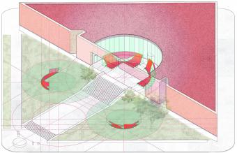 市政廳大樓的紀念性建筑群,由SOM的Edward Charles Bassett于1981年設計,Soft Civic將其巨大的帶有紀念性的幾何形態(tài)轉化為柔軟的、彎曲的結構?,F(xiàn)存建筑是由沿著公共平臺延伸的圓形和三角形體塊緊密拼接而成。該裝置呼應并打破了現(xiàn)有建筑的幾何外觀,通過彎曲的座椅和結構平臺形成了額外的圓圈和線條與建筑相連接,以此代表不同的關注點。Roberts說:“當我靠近一處場地時,我會考慮這里的歷史,隨著時間的推移,社會、政治與經(jīng)濟的力量是如何改變它的,以及我該用什么方式介入?!?br/>