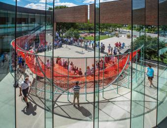 ▼該裝置激活了建筑主入口的公共空間,以作為玩耍、表演和分享的場所
