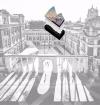 非亭由四個由磁鐵固定,外表面是鏡面,內(nèi)表面由氖紅裝飾。這種腳柱類似于瑞士的baugespanne,它在擴建屋頂和多層建筑時根據(jù)規(guī)劃設(shè)計框定建筑輪廓,幫助人們在實際建造前了解該工程對建筑及周圍環(huán)境將帶來的影響。