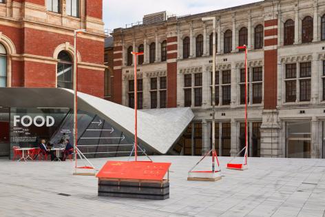 位于倫敦的Studio Micat、There Project和Proud Stuido合作創(chuàng)建了一個非傳統(tǒng)的展館——非亭,作為2019倫敦設(shè)計節(jié)的作品之一,在V&A博物館的Sackler庭院展出。