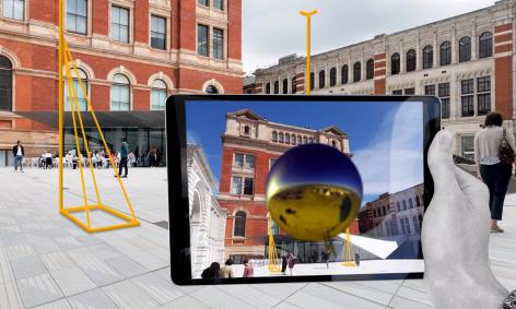 為了使裝置更加生動并進一步解釋“degrowth”的概念,策展工作室There Project和可視化辦公室Proud Studio 為該空間創(chuàng)建了六個增強現(xiàn)實場景。使用智能手機或平板電腦,訪客可以看到不同形式的非亭。