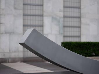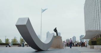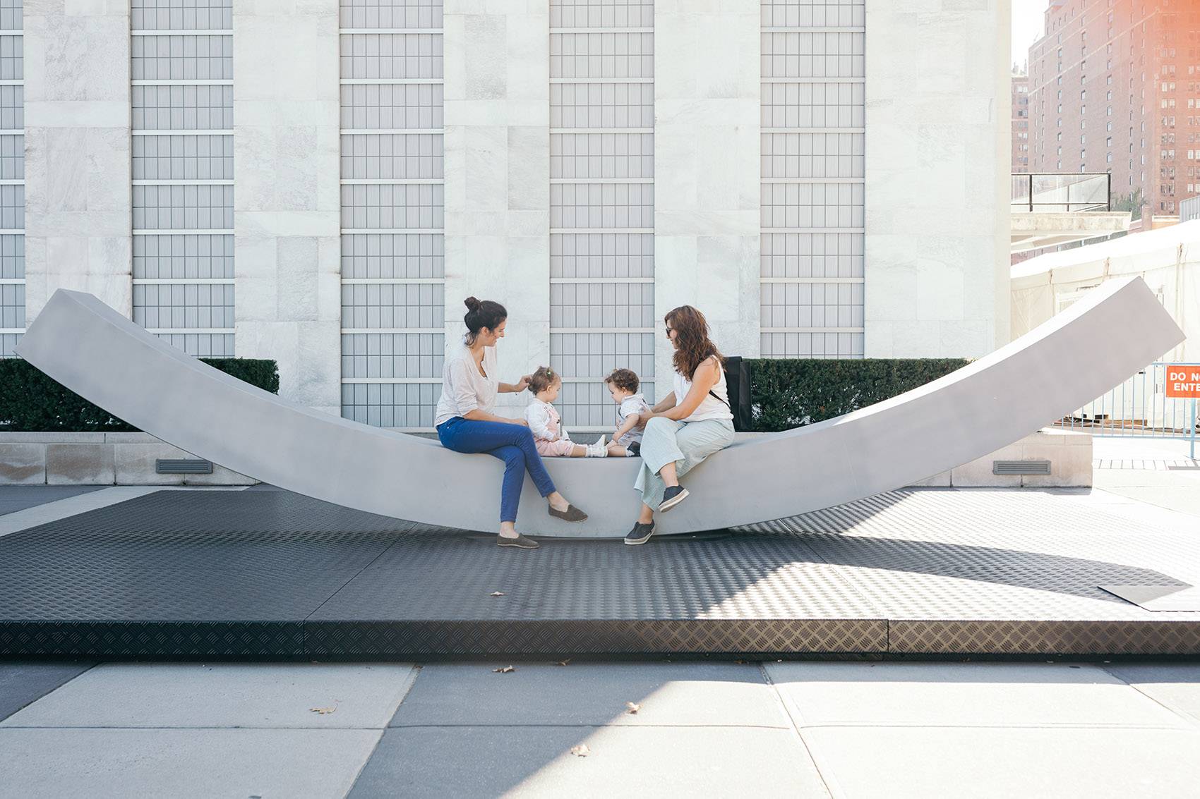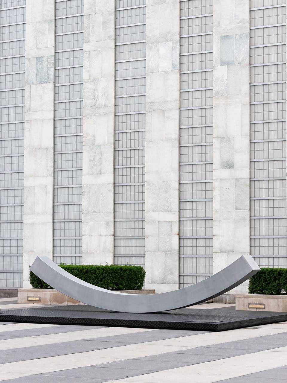 裝置位于聯(lián)合國總部廣場的主要入口處,毗鄰著名的非暴力雕塑——一把用青銅鑄造的超大柯爾特左輪手槍,打結(jié)的槍管和槍口朝上。這座雕塑俗稱“打結(jié)的槍”,由瑞典藝術(shù)家Carl Fredrik Reutersw?rd于1993年創(chuàng)作,是對創(chuàng)作歌手兼和平主義者約翰·列儂被謀殺的回應(yīng)。從那時起,打結(jié)的槍就成為了全球非暴力的象征。坐落在這樣一個非同尋常的位置,“最好的武器”與“打結(jié)的槍”共同肩負(fù)著關(guān)于和平與對話的多重價值與使命。