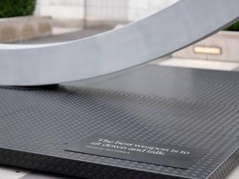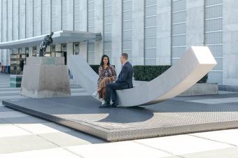 由Sn?hetta事務(wù)所設(shè)計(jì)的裝置“最好的武器”(the Best Weapon)目前在紐約聯(lián)合國總部廣場上展示,它象征著和平對話與外交。受諾貝爾和平中心(Nobel Peace Center)委托,該裝置的名字源于納爾遜·曼德拉的名言:“最好的武器是坐下來交流”(The Best Weapon is to sit down and talk)。