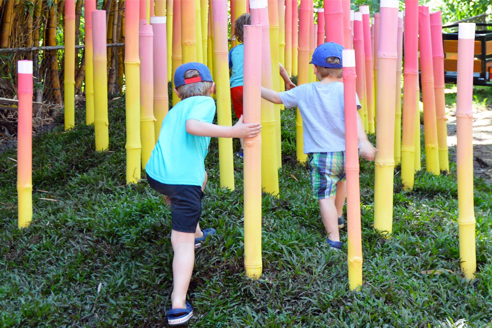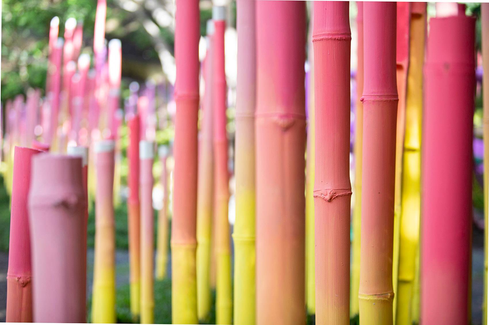 ▼整片竹林被繪制成漸變色彩