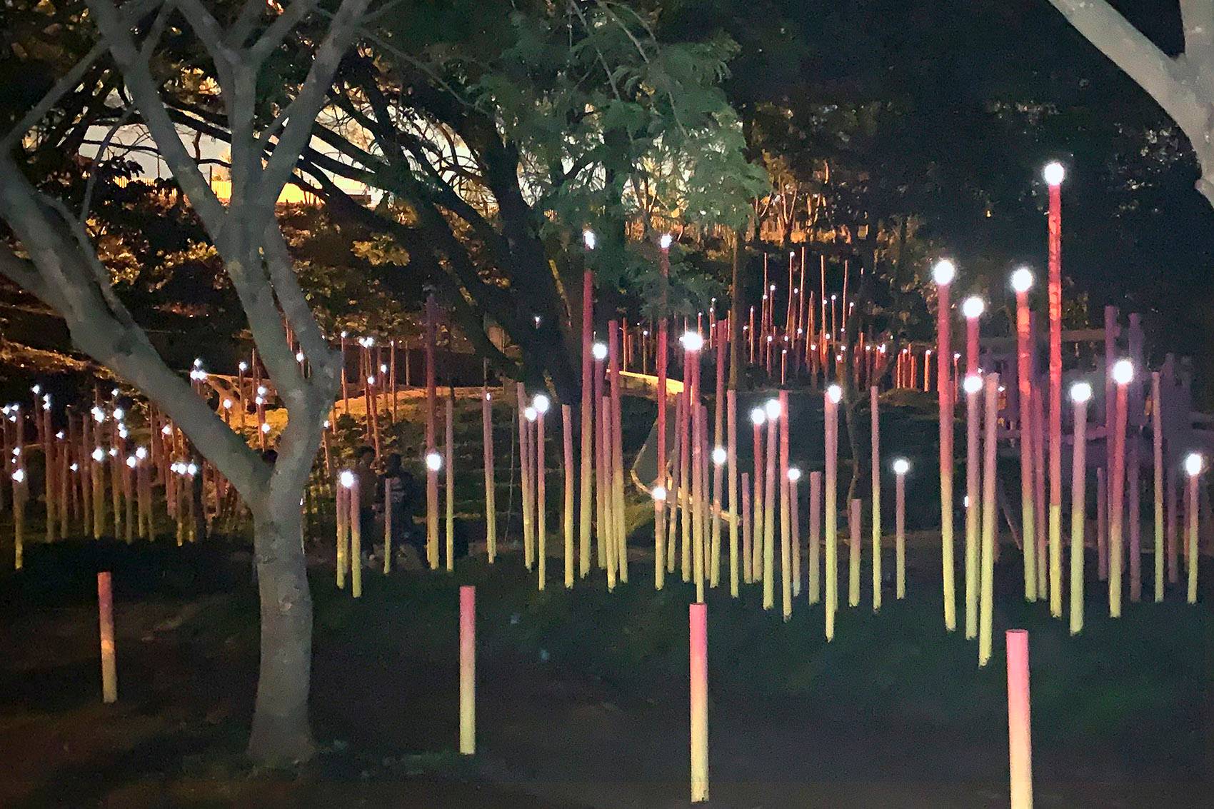 ▼夜幕下,開了燈的裝置成為一片燈海