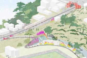 ▼項目一側(cè)是鐵路,另一側(cè)是有機市集和公共綠地