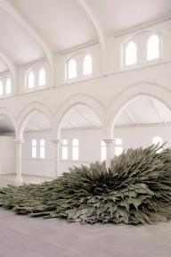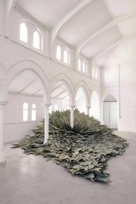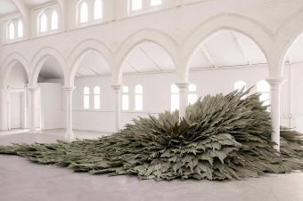 Proximity是一個具有在地性的藝術裝置,它呈現了創(chuàng)作者對人與自然之間的本能和共生關系的探索。該藝術作品是對澳大利亞墨爾本一座19世紀建筑的回應,在探索這種關系的過程中,藝術家甚至能夠構想出建筑與作品之間的對話。Proximity要表達的是自然對空間的一種干預:葉片所代表的自然快要將整棟建筑占領,它吞沒空間中的立柱,然后繼續(xù)向四周的地板和墻壁蔓延。“我們想象著大自然正在將這個地方占領并收回?!?/p>