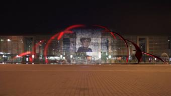 ▼水幕投影用于展示來(lái)自全世界的虛擬藝術(shù)作品