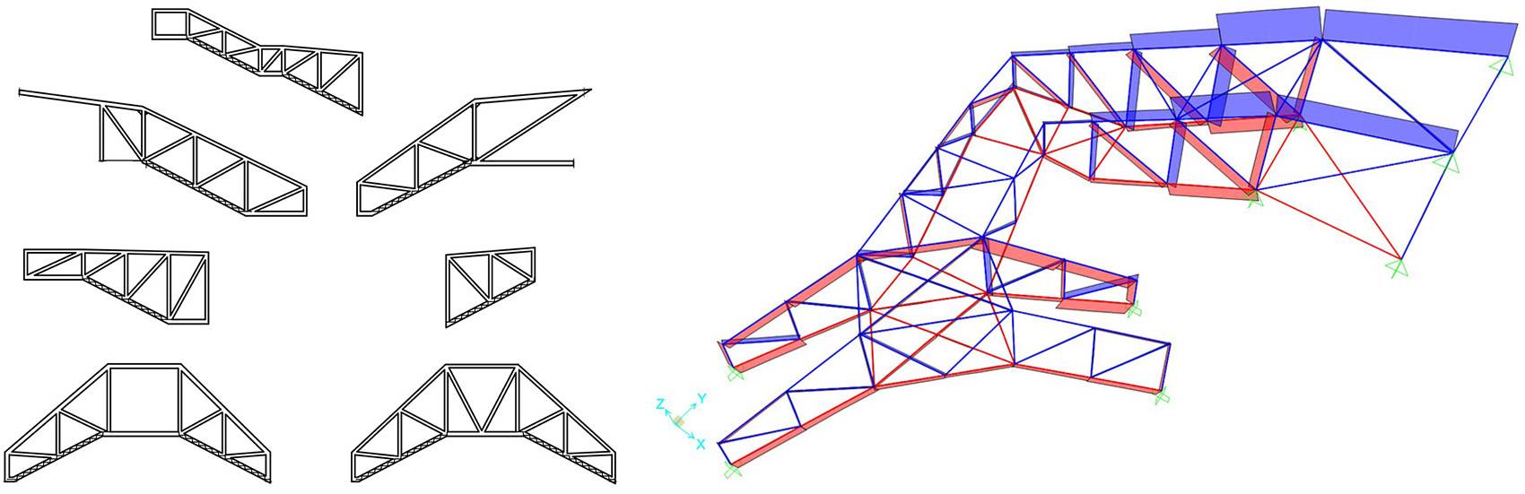 ▼一系列相互交織的桁架結(jié)構(gòu)