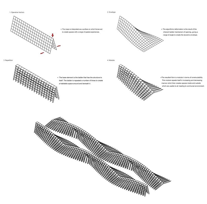 為了傳播“通過教育授權(quán)”的理念,NUDES設(shè)計的“書蟲”展架將在印度全國巡回展出,包括鄉(xiāng)村和城市地區(qū)。展架結(jié)構(gòu)使用了3,600個模塊化預(yù)制構(gòu)件,這意味著它可以在不同的地點輕易地拆除、運輸和重新組裝。展架可以在一周內(nèi)部署在現(xiàn)場,它還以低碳和促進可持續(xù)建筑技術(shù)而自豪。
