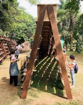 ▲ 展架“書蟲”穿過景觀,沿著蜿蜒的小徑,提供了獨特的游覽體驗