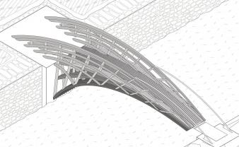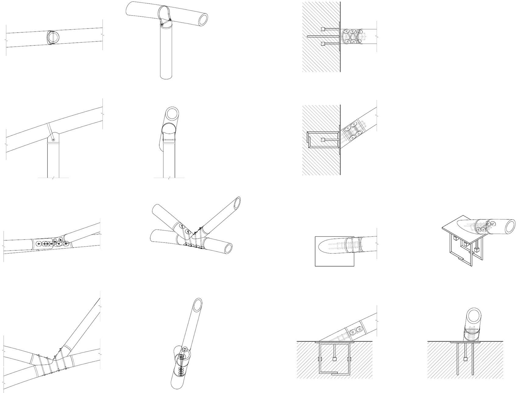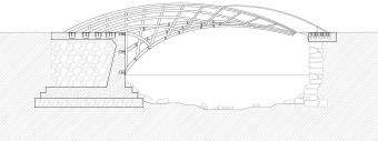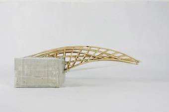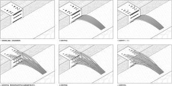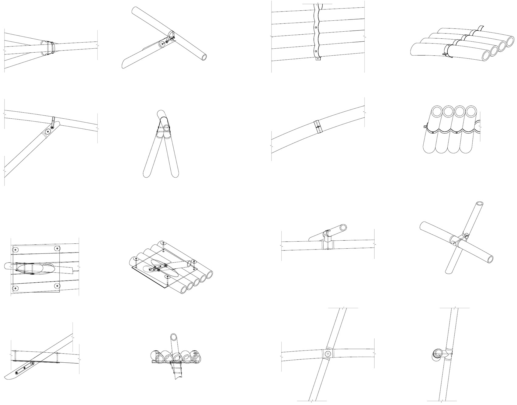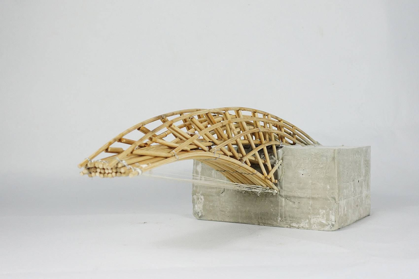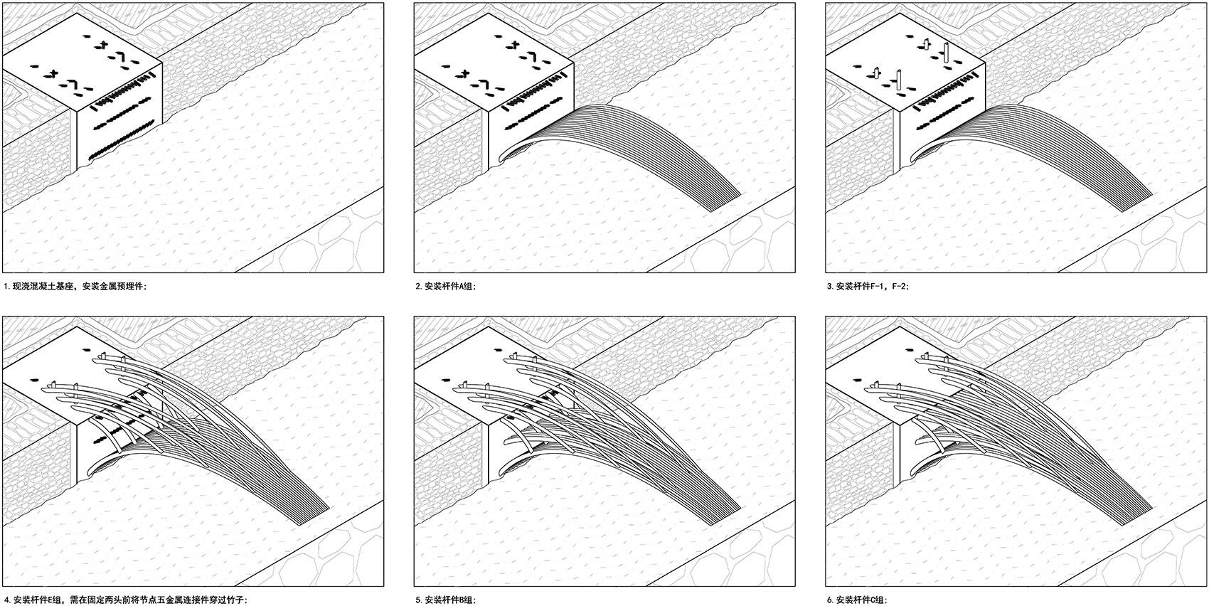 豎向挺立是重力最直白的表達,壓彎才是對重力的一種詩意的刻畫。不同于木構(gòu)與石構(gòu),竹材本身就具有良好的可彎曲的韌性,而且通過人工的火烤工藝,弧線曲率變得更加可塑,為人所馭。被烤彎的竹子,隨著時間推移,會逐漸產(chǎn)生回彈力,這是一種天然的預(yù)應(yīng)力。