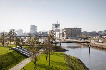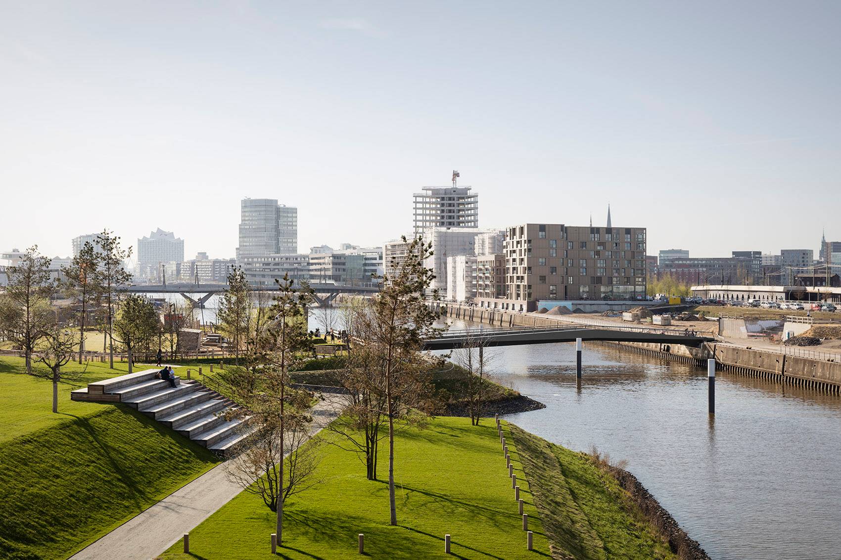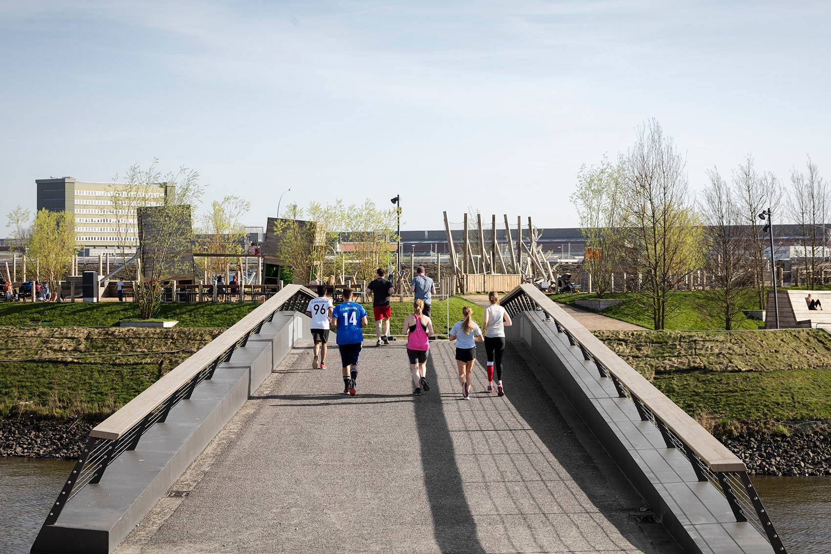 上周末一場為期兩天的慶祝儀式宣告了港口新城的巴肯公園的正式開放。這也是大量游客第一次通過新建成的巴肯公園步行橋進(jìn)入公園。精巧纖細(xì)的鋼結(jié)構(gòu)步行橋由gmp·馮·格康,瑪格及合伙人建筑設(shè)計(jì)事務(wù)所與來自斯圖加特的Knippers Helbig工程設(shè)計(jì)事務(wù)所聯(lián)合設(shè)計(jì),方案在港口城有限公司2013年舉行的公開招標(biāo)中獲得了一等獎(jiǎng)。